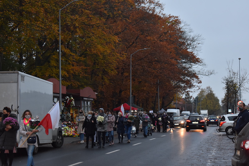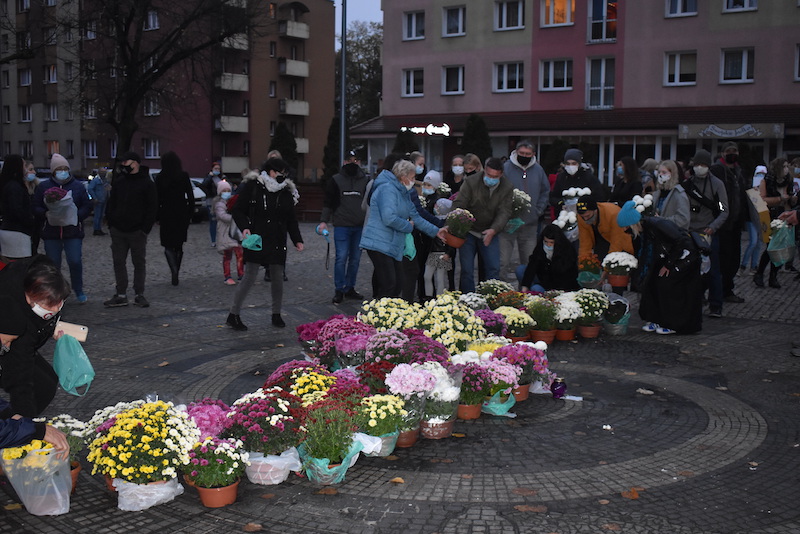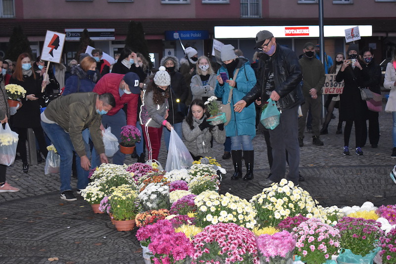Kilkadziesiąt chryzantem oraz znicze kupili w niedzielę (1 listopada) od sprzedawców przy cmentarzu, uczestnicy manifestacji w Stargardzie. W kolorowej paradzie z kwiatami i transparentami, przeszli na Rynek Staromiejski, gdzie z chryzantem uformowali błyskawicę.