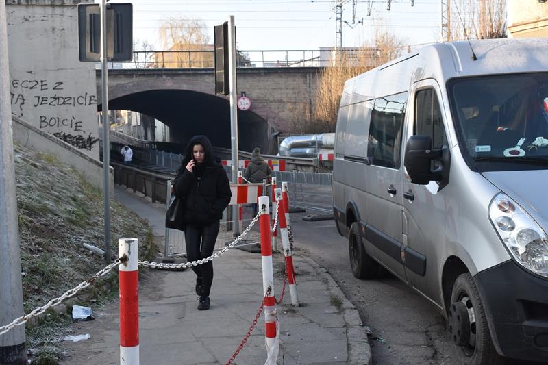 Przejazd pod wiaduktem na ul. Konopnickiej/Pierwszej Brygady jest zamknięty od kilku tygodni. Wykonawca przekładał tam sieci energetyczną, gazową, wodociągową i teletechniczną, które kolidowały z planowaną przebudową. Te roboty już się zakończyły. Teraz zabezpiecza sąsiadujące budynki oraz tor, po którym podczas robót będzie prowadzony ruch pociągów. Prace te, ze względu na bezpieczeństwo, nie pozwalają na dalsze utrzymanie ruchu pieszych. Dlatego przejście zamknięto.