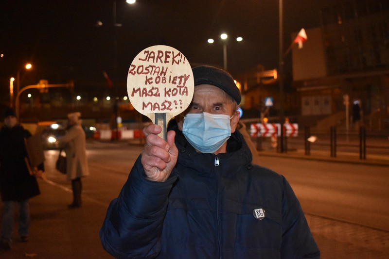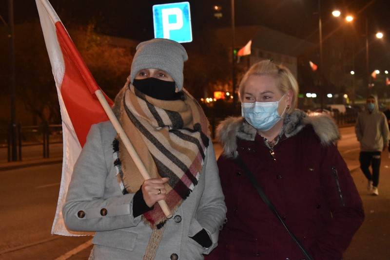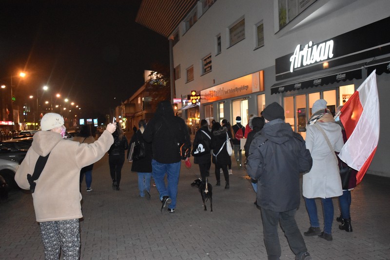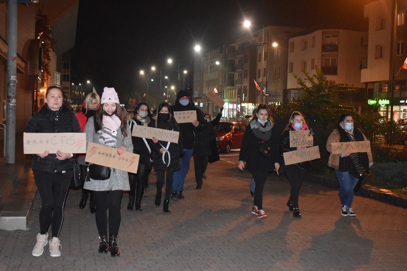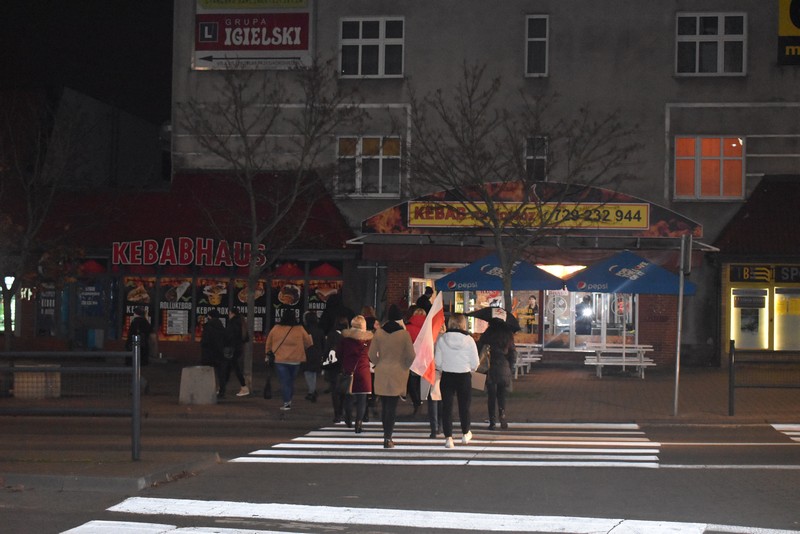 Kilkudziesięciu uczestników, w tym nieliczni starsi stargardzianie, przemaszerowało dziś wieczorem ulicą Wyszyńskiego. Dzierżąc w dłoniach parasolki, flagi lub plakaty z hasłami, wśród których dominował "J**** PiS" przeszli kilka razy przez centrum. Co pewien czas pojawiała się policja w radiowozach. Nie interweniowała.