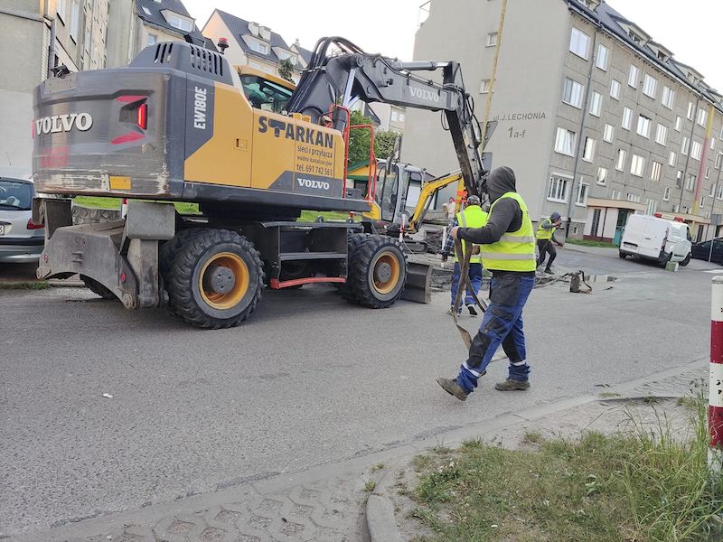 W Stargardzie nadal trwa usuwanie awarii sieci wodociągowej. Zamknięta jest ulica Czarnieckiego. Fot. Wioletta Mordasiewicz