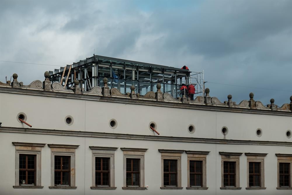 - Taras na dachu skrzydła nie może zostać obecnie udostępniony, ponieważ trwają prace renowacyjne attyk, niezwiązane z całością inwestycji, a wynikające z nakazu Wojewódzkiego Konserwatora Zabytków - wyjaśnia Agnieszka Ciuruś, główny specjalista ds. inwestycji i remontów w zamku. - Polegają one na naprawie murowanej części attyki, wymianie blaszanych opierzeń i skotwieniu elementów kamiennych. Prace te uniemożliwiają montaż barierek ochronnych wokół tarasu i pomostów widokowych.