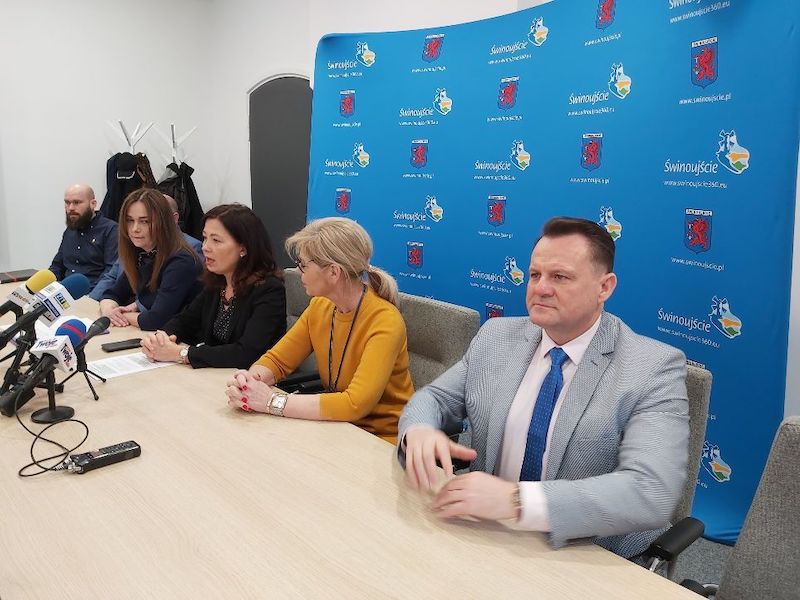 Na zdjęciu: Konferencja prasowa w urzędzie w Świnoujściu. Władze miasta wolą dmuchać na zimne. Zalecają ostrożność i unikanie dużych skupisk ludzkich.