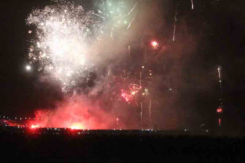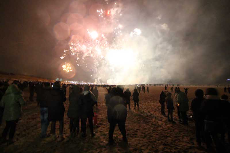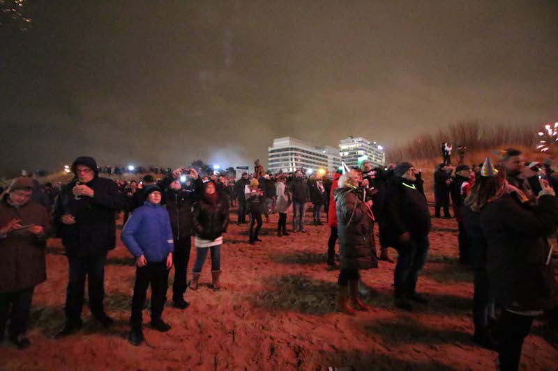 Pokaz sztucznych ogni przyciągnął na plażę tysiące widzów. Tutaj składali sobie życzenia z okazji nowego roku. Wielu przyniosło ze sobą własne sztuczne ognie. Co prawda były głosy, że wzorem niektórych miast kurort powinien odjeść od tego typu świętowania, żeby nie straszyć zwierząt i przeznaczyć środki na np. sprowadzenie do Świnoujścia dobrego artysty, ale władze kurortu postawiły ostatecznie na sztuczne ognie. Pokaz trwał kilkanaście minut. Tekst i fot. BaT