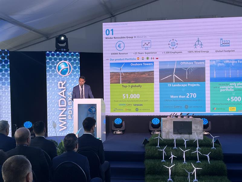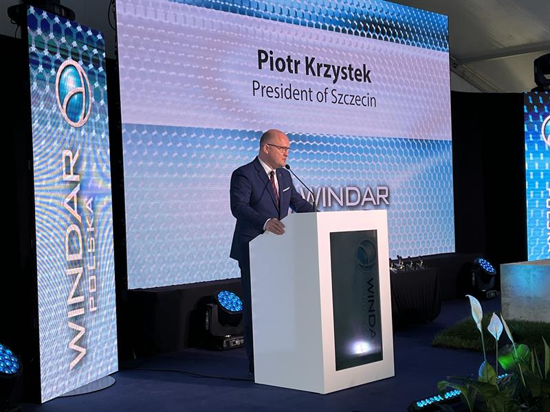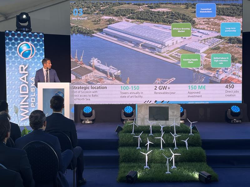 Na Ostrowie Grabowskim, w szczecińskim porcie, wmurowano w środę (28 maja) kamień węgielny pod budowę zakładu wytwarzającego wieże do morskich turbin wiatrowych. To symboliczny start przedsięwzięcia, chociaż inwestor, którym jest spółka Windar Polska, przeprowadził już prace przygotowawcze. Roboty trwają od kilku miesięcy. Gościem uroczystości był m.in. Krzysztof Paszek, minister rozwoju i technologii.