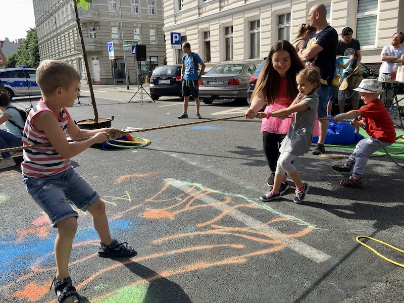Dzieciaki wdychają opary rozgrzanego asfaltu wśród poniemieckich od dziesięcioleci nieremontowanych kamienic, naprawdę super sprawa !!! Oby więcej takich imprez, bo to samo zdrowie i ekologia dla dzieci. Nie lasy, nie parki, ale właśnie betonowe, ciemne, wyasfaltowane ulice. Gratuluję pomysłowości organizatorom tego wspaniałego wydarzenia.