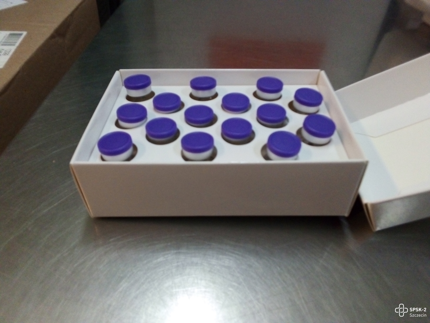 "W jednym pudełku zapakowane są szczepionki dla 75 pacjentów. Jedna fiolka zawiera 5 dawek. Szczepionka jest w postaci suchego proszku, który zawiera materiał genetyczny wirusa. Proszek należy rozpuścić dodając chlorek sodu (popularnie zwany solą fizjologiczną). Szczepionka (0,3 ml) podawana jest domięśniowo, w lewe lub prawe ramię. Oprócz pudełek ze szczepionkami dostawa zawiera akcesoria niezbędne do procesu szczepienia, to m.in.: strzykawki, igły, gaziki, sól fizjologiczna, karta pacjenta, kwestionariusz wywiadu przesiewowego" - informuje w komunikacie szpital.