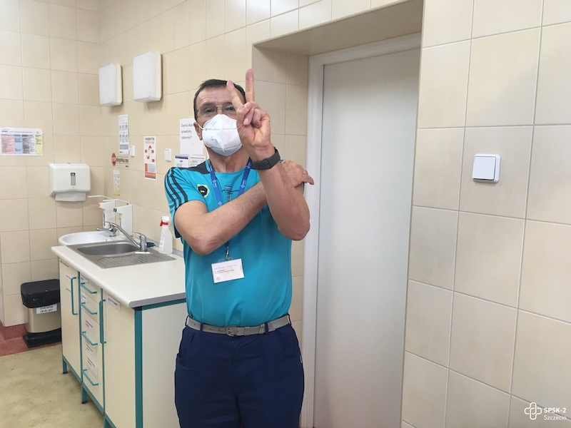 Na zdjęciu prof. dr hab. n. med. informuje nas, że przyjął dwie dawki.