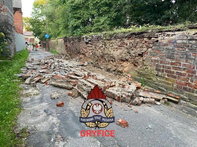 Do groźnego zdarzenia doszło w poniedziałek wieczorem w Trzebiatowie (powiat gryficki). Przy ulicy Wodnej częściowo zawalił się zabytkowy mur obronny.