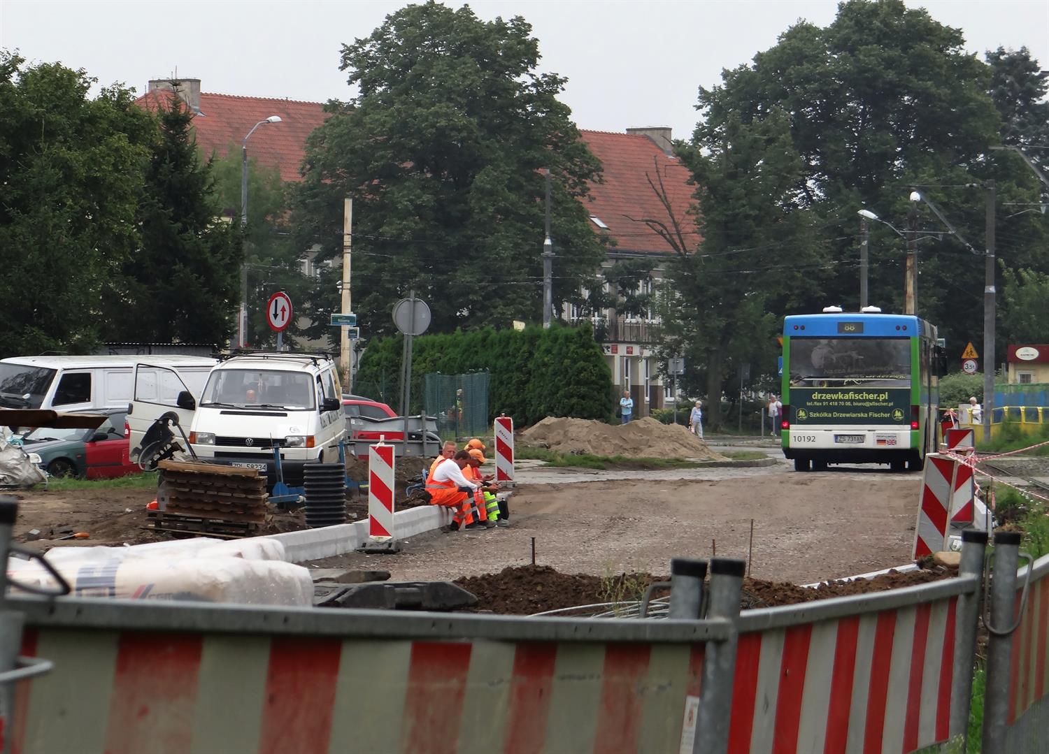 Na ulicy Kwiatowej na szczecińskich Gumieńcach roboty przy przebudowie nabrały większego tempa. Na fragmencie ulicy, gdzie do niedawna był zielony pas nieużytków od ul. Brodnickiej wzdłuż torowiska tramwajów do najwęższego miejsca, po wyznaczonym krawężnikami i utwardzonym jednym pasie nowej jezdni kursują teraz miejskie autobusy. Możliwy jest nim też dojazd do okolicznych posesji.