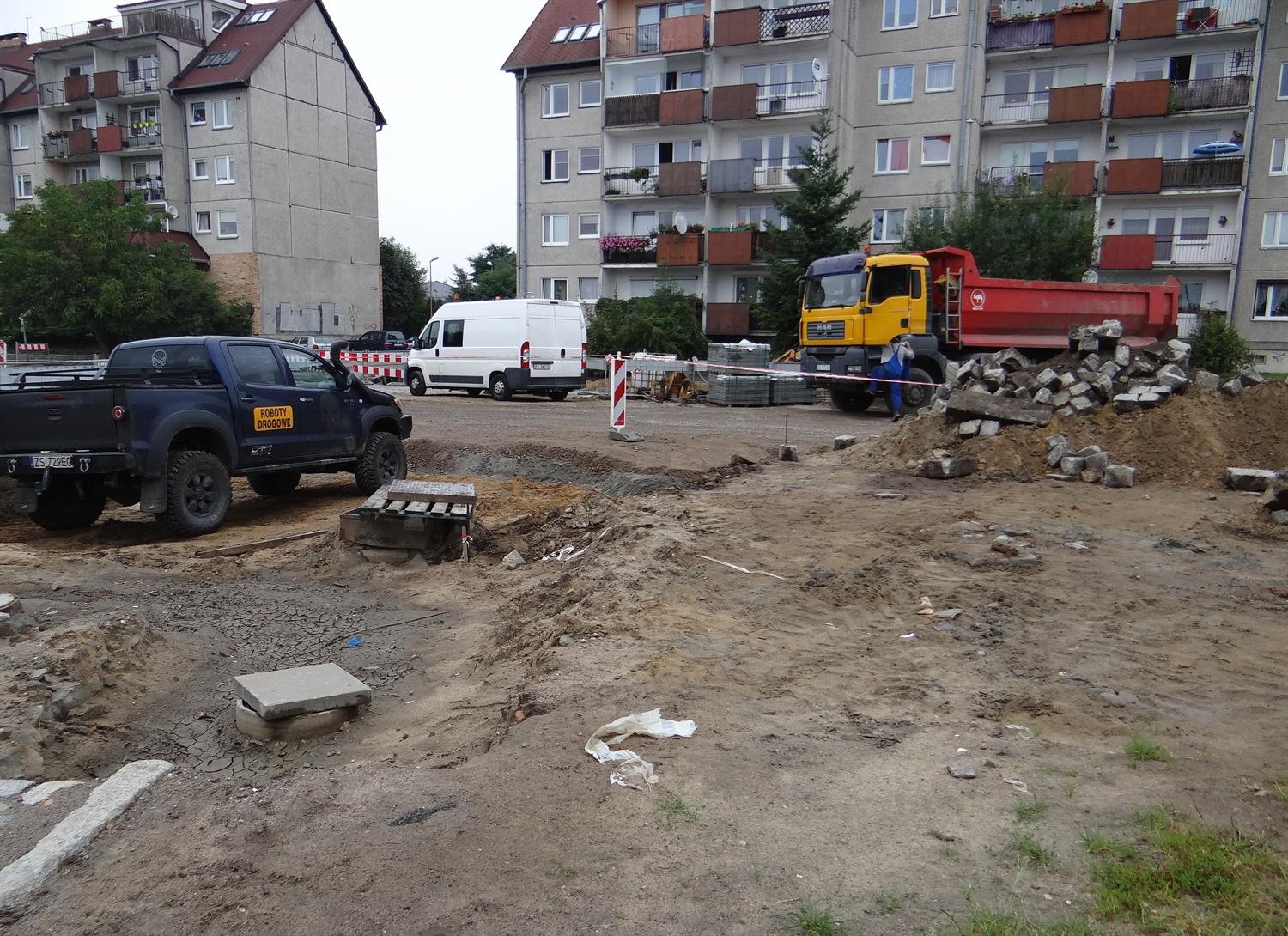 Do finału tej inwestycji drogowej jednak jeszcze daleko. Na drugim odcinku nowego pasa jezdni i pobocza od strony pobliskich bloków trwają roboty brukarskie przy układaniu nowych nawierzchni, w tym chodników i nowych miejsc do parkowania.