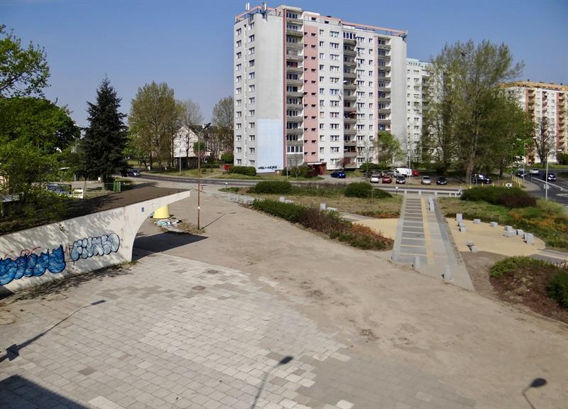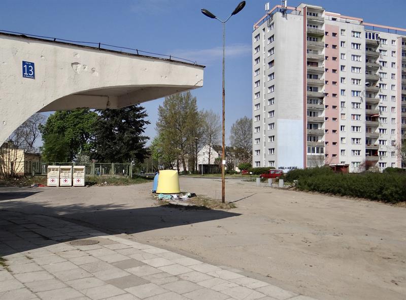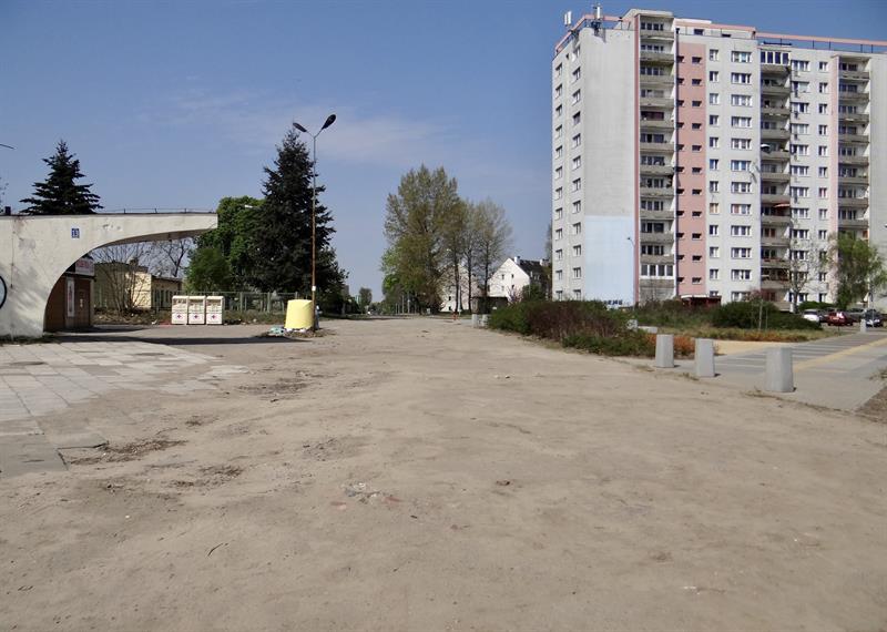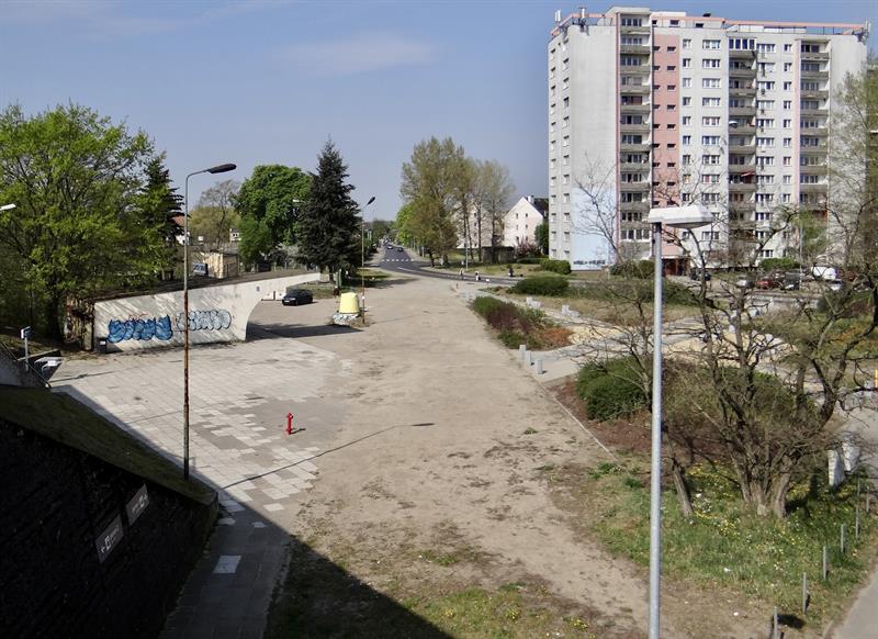 Na zdjęciu: Plac z dojściem do stacji PKP Szczecin Zdroje obok skrzyżowania ulic Sanatoryjnej i Walecznych.