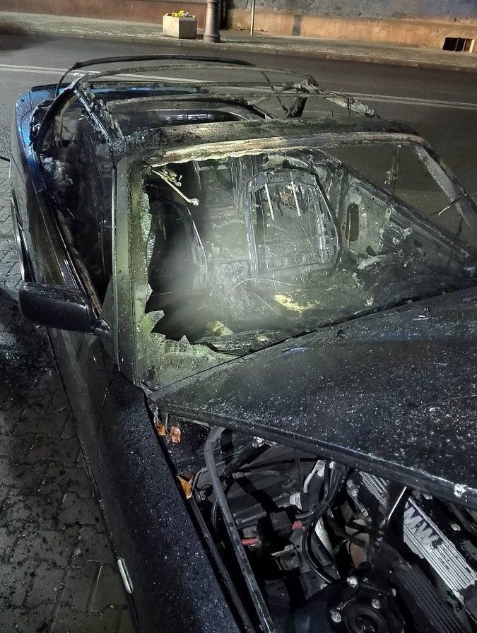Strażakom udało się ugasić pożar. Nikt nie został poszkodowany, ale samochód jest całkowicie zniszczony.