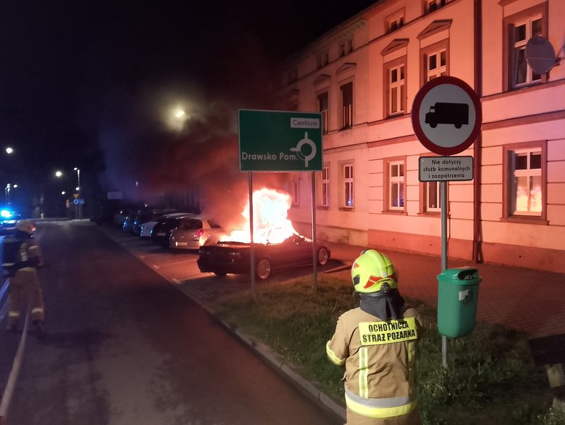 Do pożaru samochodu osobowego doszło w niedzielę (20 kwietnia) na parkingu przy ul. 5 Marca w Złocieńcu (powiat drawski).