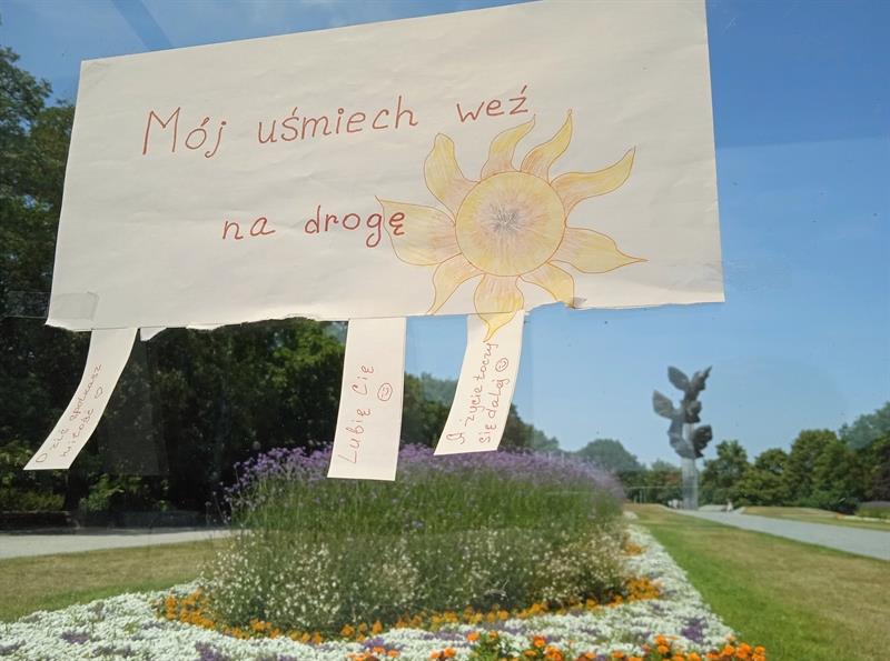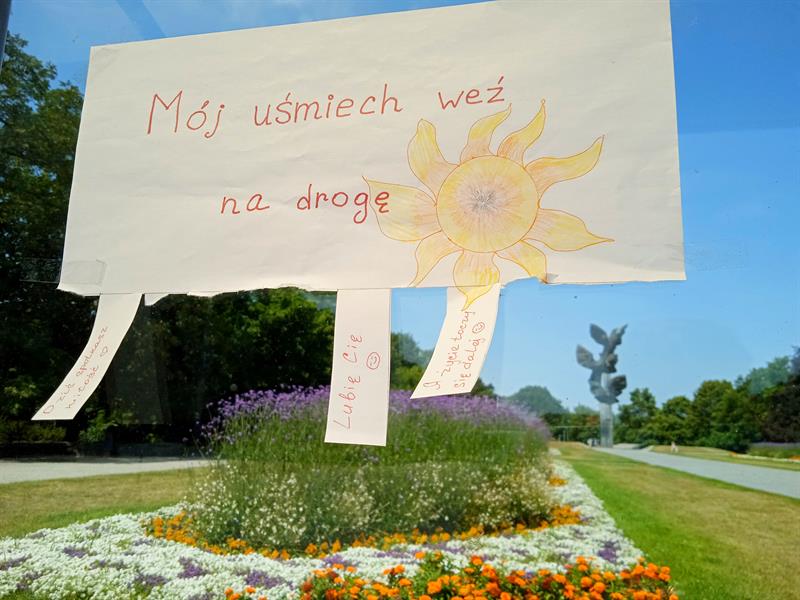 Na przystanku autobusowym „Jasne Błonia" pojawił się anons - nietypowy, bo z pozytywnym przesłaniem. Przy malowanym słoneczniku nieznany autor napisał: „Mój uśmiech weź na drogę". Natomiast w miejscu, gdzie zwykle pojawia się numer kontaktowy do autora, tym razem można było oderwać jedno z jego serdecznych pozdrowień, jak choćby: „Lubię Cię", udekorowane emotikonem z sercem.