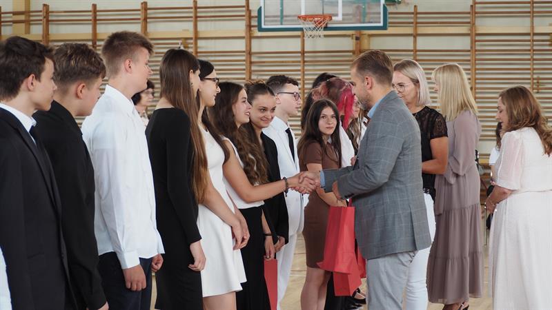 - Każdy z was jest niepowtarzalny i każdy z was jest wyjątkowy - mówił obecny na uroczystości burmistrz Polic Krystian Kowalewski. - W tej wyjątkowości jest siła. I w tej sile musicie znaleźć swoją umiejętność, swój pomysł na własną przyszłość. Życzę wam szczęścia, siły, odwagi do tego, abyście podejmowali słuszne decyzje, i żebyście stawali się sobą, nie bali się być sobą.