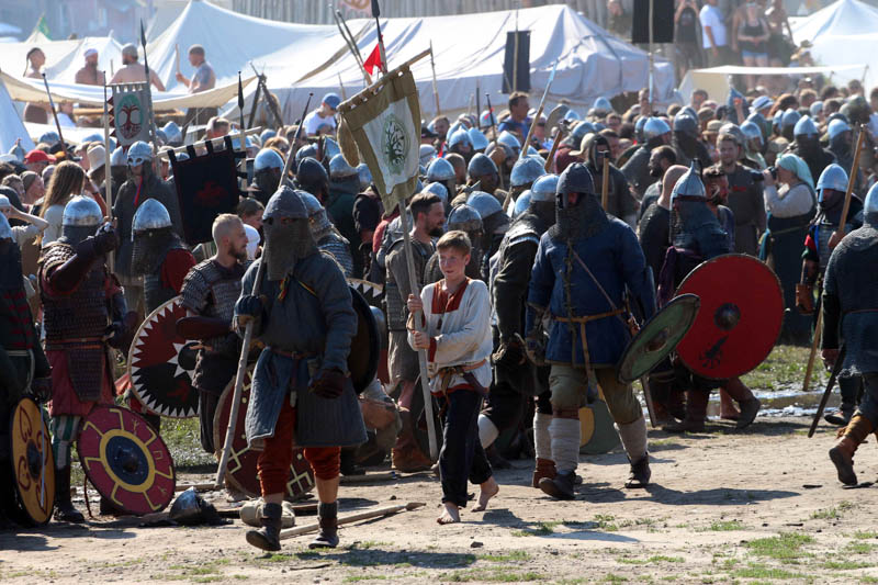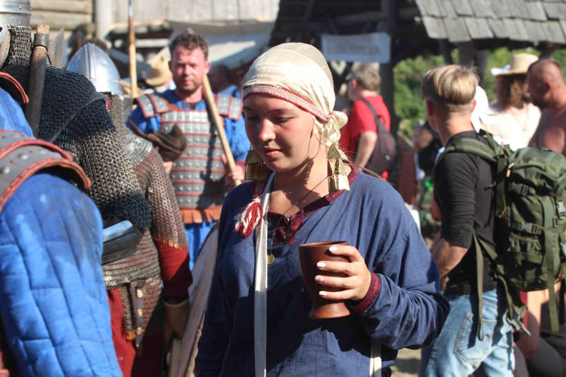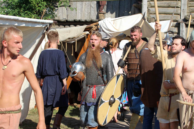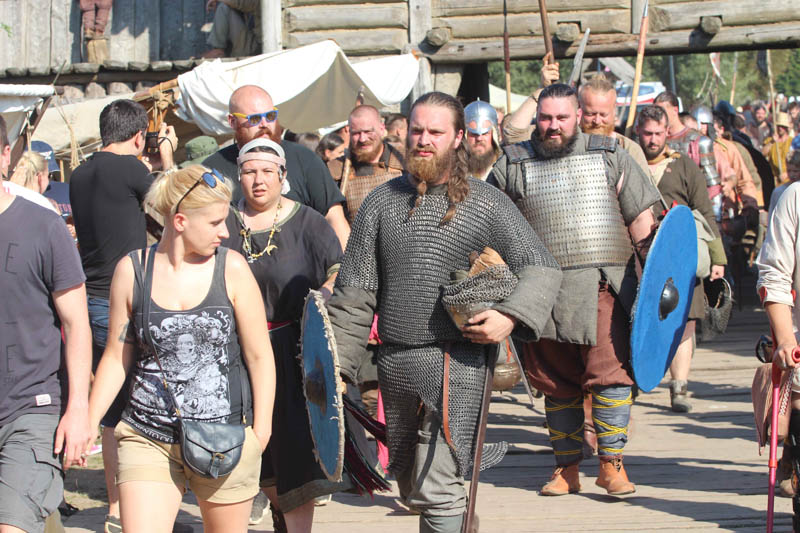 W piątek (3 sierpnia) w godzinach popołudniowych - mimo zbliżającej się bitwy - w przeciwieństwie do zeszłych lat w skansenie nie było wielkiego ścisku. Tradycyjnie pojawiło się sporo kramów, na którym można było kupić rękodzieła, biżuterię, stroje lub książki o historii wczesnego średniowiecza. Na placu przy karczmie rozbrzmiała muzyka. Znalezienie dobrej „miejscówki”, żeby obejrzeć bitwę nie było trudne.