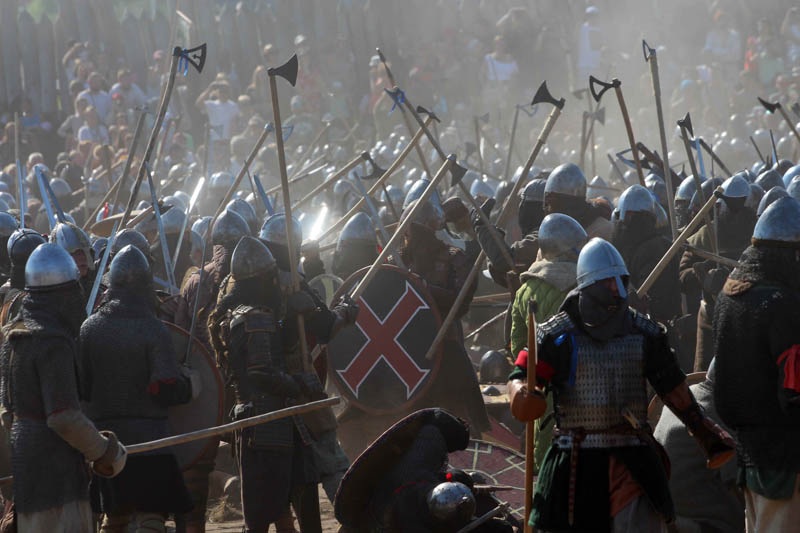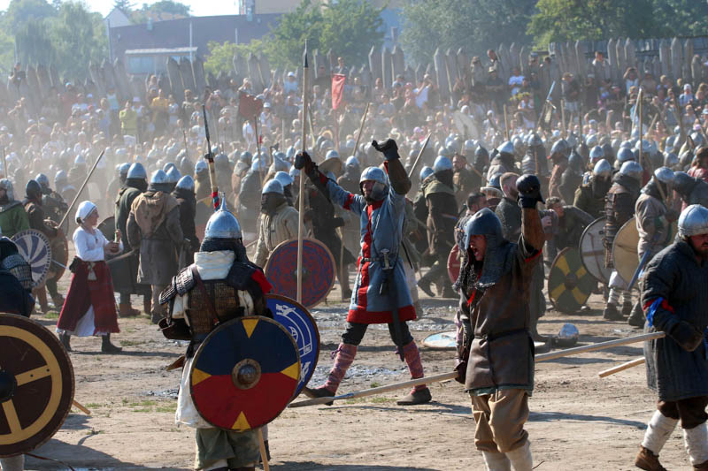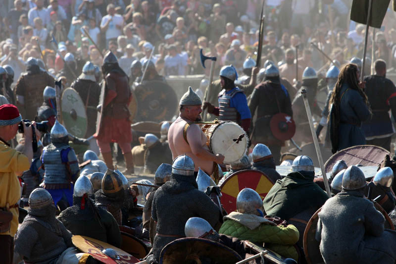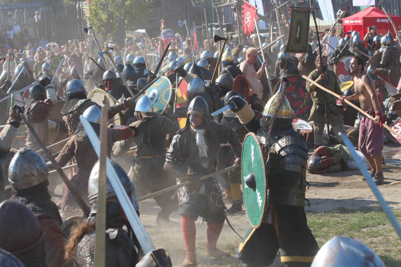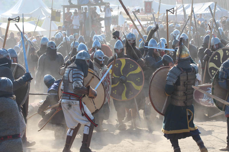 Upały dały się znać we znaki wojownikom. Pierwsza odsłona bitwy między najeźdźcami oraz armią Jombsborga była dość statyczna. - Więcej taktyki niż jatki - padały komentarze. Ospałość obrońców grodu wykorzystali najeźdźcy, którym udało się uszczknąć punkt, co jest zjawiskiem dość rzadkim jeżeli chodzi historie wolińskich bojów; a przynajmniej w tych ostatnich latach. Przypomnijmy, że bitwy nie są reżyserowane, a na placu boju wygrywają lepsi. Nad wszystkim czuwają sędziowie. Kolejne odsłony były już bardziej zacięte i ostatecznie zakończyło się na wyniku 2:1 dla obrońców. Festiwal potrwa do końca weekendu.