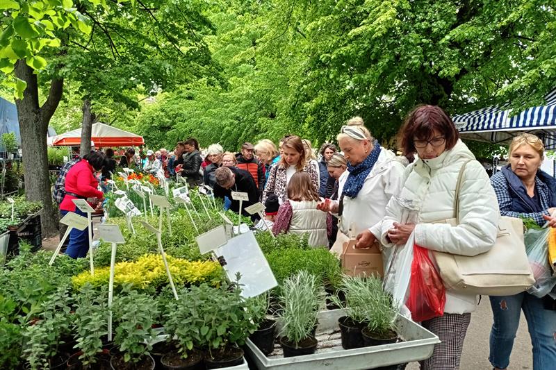 Kramy z zieloną ofertą do domu i ogrodu - tradycyjnie - zajęły górny taras Wałów Chrobrego. Oferują przede wszystkim bogaty wybór bylin, ziół, winorośli, drzew i krzewów ozdobnych oraz owocowych, ale również nawozy, narzędzia i sprzęt ogrodowy, elementy małej architektury, a też różnorodne ozdoby i dekoracje. Wśród tych ostatnich są zarówno naturalne kryształy (cena sięga nawet do blisko 5 tys. zł), wyroby z pół- i szlachetnych kamieni, gliniane ozdoby, jak również bukiety oraz wieńce z suszonych zbóż i kwiatów.