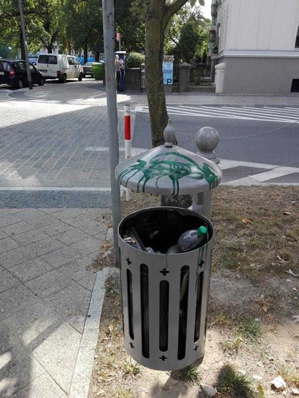 W rejonie Starego Miasta w Szczecinie jakiś czas temu zamontowano estetyczne kosze na śmieci. Ale komuś ta estetyka nie pasowała, więc kosz przy ul. Henryka Pobożnego dostosował do swoich oczekiwań. Dlaczego ma być ładnie, skoro może być paskudnie?