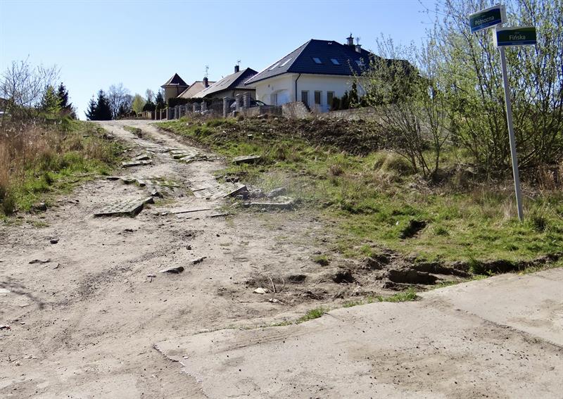 W obniżeniu na wysokości, gdzie przez okoliczne tereny przepływa strumień Warszewiec, łączy się z ulicami Północną (ta ma w tym miejscu dwie odnogi w kierunku ul. Andersena w jako takim stanie z asfaltem, a w przeciwnym kierunku pod górkę do ul. Norweskiej w rejon zabudowy willowej jest jednym wielkim wyboistym duktem, wyłożonym miejscowo rozpadającymi się płytami betonowymi i przesypanych prowizorycznie budowlanym gruzem) oraz ul. Fińską, która z kolei przypomina śródleśną przecinkę z pasem ubitej ziemi. To jednocześnie od lat wąskie gardło drogowe z niebezpiecznym zakrętem pod kątem 90 stopni. To powoduje, że przy jego pokonywaniu samochodem widoczność ograniczona jest praktycznie do zera. Nadjeżdżający z przeciwnych kierunków kierowcy nie widzą swoich pojazdów. Na samym łuku jezdni nad strumieniem pas asfaltu z jezdnią jest tak wąski, że nawet dwa auta osobowe jednocześnie nie są w stanie się wyminąć na tym łuku. Trzeba nie tylko zwolnić, a nierzadko się zatrzymać, by móc następnie przejechać. To jednocześnie rewir niebezpieczny dla pieszych, bo nie ma tam chodników, a pobocza po obu stronach jezdni, którymi można tam przemknąć, jeszcze węższe.