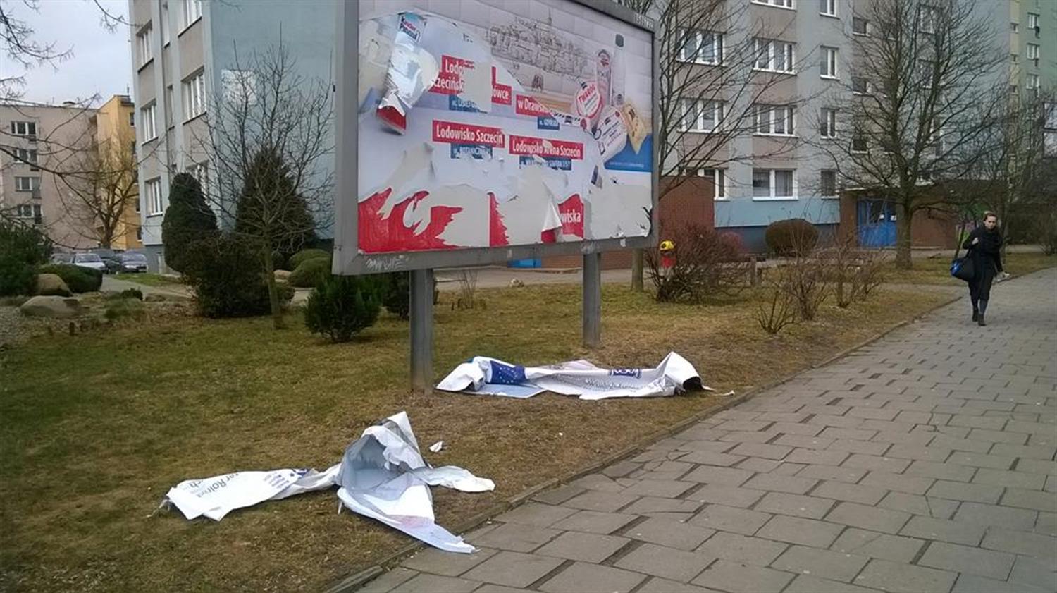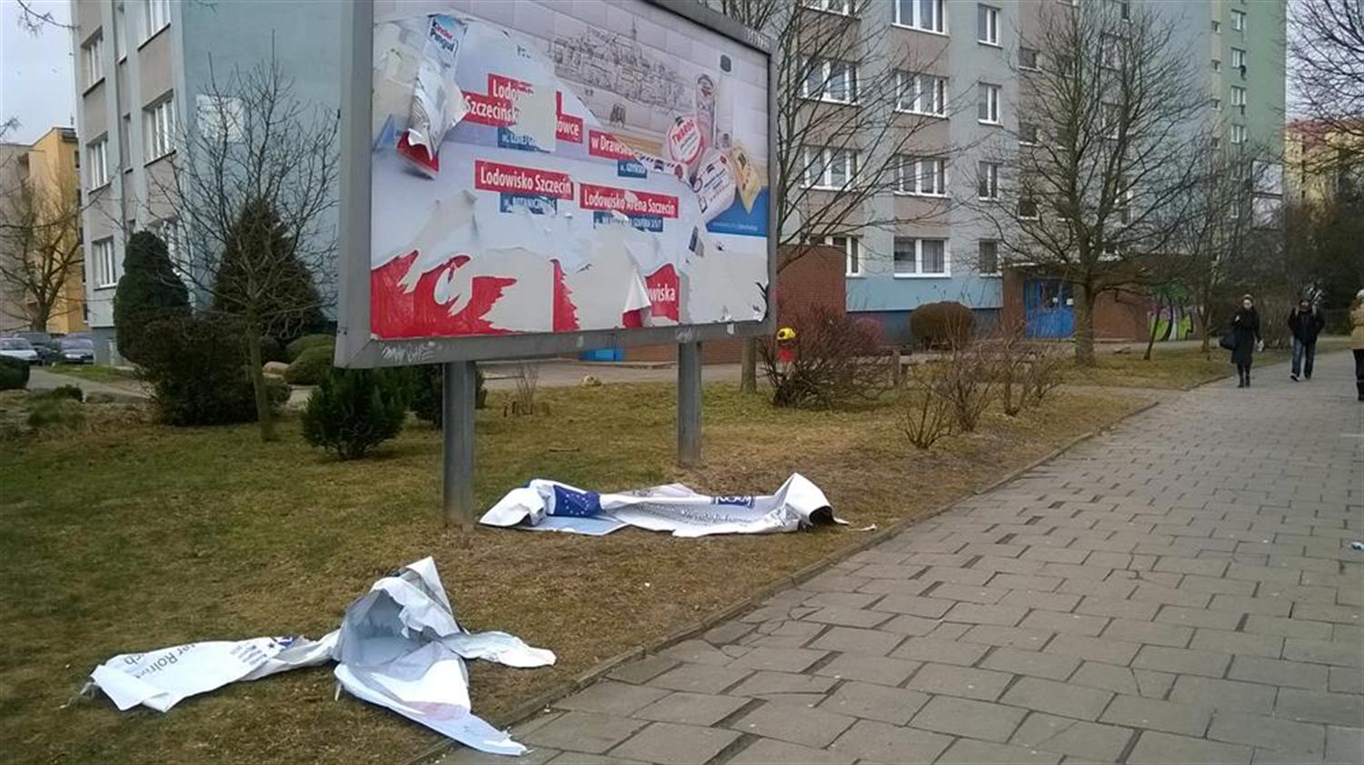 zglosic do wlasciciela billboardu zeby posprzatal swoje rzeczy i do strazy miejskiej celem nalozenia mandatu aby sie nauczyli na przyszlosc