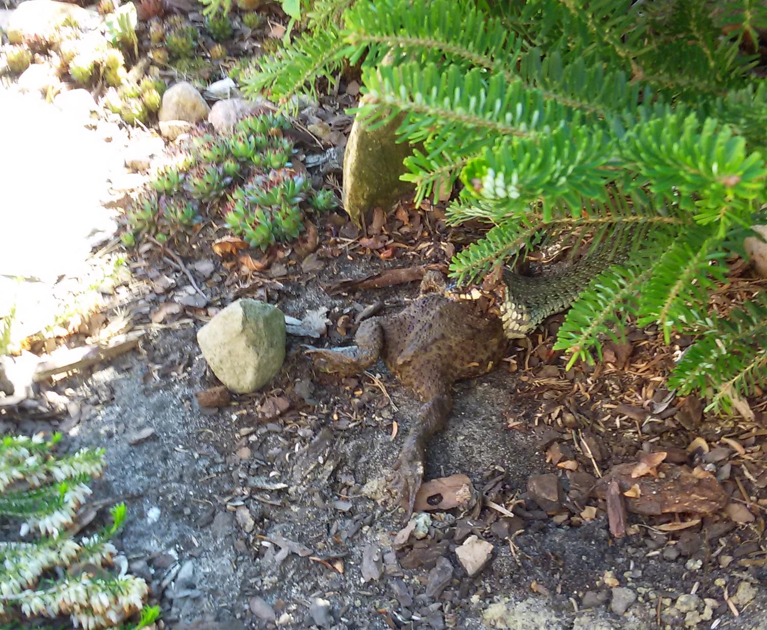 Dopiero po chwili pani Iwona spostrzegła, że między kamieniami rozgrywa się walka o życie: wąż trzyma w szeroko rozwartych szczękach ogromną ropuchę. Choć wydawałoby się to niemożliwe, ten wielki płaz był już w połowie połknięty przez niepozornego gada.
