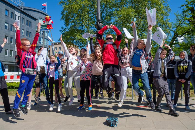 We wtorek (1 czerwca) - dzień dziecka. Czas podwójnie szczęśliwy, bo znowu można być razem, w gronie kolegów i przyjaciół. A to przecież podstawa dobrej zabawy! Wystarczy spojrzeć na bohaterów tego zdjęcia - uczniów klasy IV a ze Szkoły Podstawowej nr 53 których spotkaliśmy podczas wycieczki po mieście z przewodnikiem Małgorzatą Dudą. Wszystkim świętującym życzymy, by tych chwil radości w ich życiu było jak najwięcej.