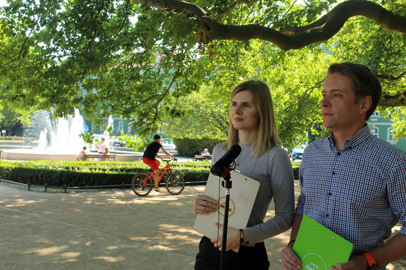 Szczecińscy „Zieloni" chcą wprowadzenia dnia wegańskiego w podległych prezydentowi szkołach i przedszkolach. Na zdjęciu: Jagoda Żyłkowska i Andrzej Radziwinowicz.