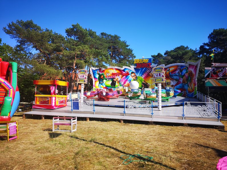Te wesołe miasteczko przyjeżdża od lat do Pobierowa.Nie słychać od nich żadnych hałasów ani muzyki zamykają o 22.00 bez tej atrakcji w Pobierowie było by smutno