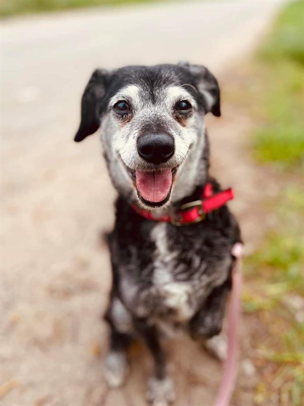 Słodki mały Mikuś (111/24), o rozczulająco posiwiałym pyszczku, prosi o nowy dom i rodzinę. Fot. Schronisko dla Bezdomnych Zwierząt/Wolontariat