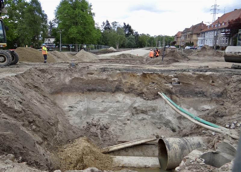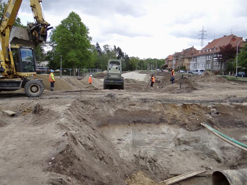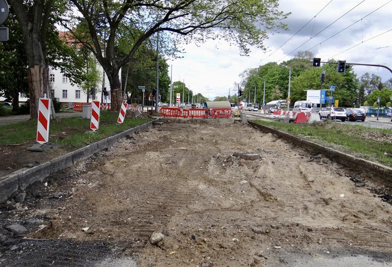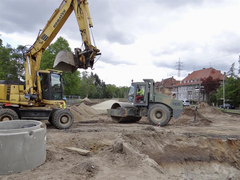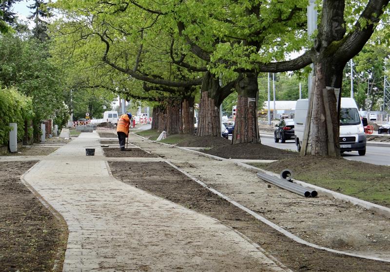 W ramach prac związanych z budową trasy średnicowej prowadzono w ostatnim czasie m.in. roboty przy kruszeniu elementów betonowych i kamiennych, hałdowaniu materiału, humusowaniu skarp. Prowadzono również prace brukarskie i przy pielęgnacji zieleni. Te ostatnie m.in. po obu stronach w pasach poboczy w al. Wojska Polskiego od skrzyżowań z ulicami Ludwika Solskiego i Bolesława Prusa do ul. Romualda Traugutta. Nowy pas chodnika ułożony został także od skrzyżowania z ul. Bohdana Zaleskiego do wysokości wjazdu na pobliską stację paliw. Na ułożenie warstw nawierzchni wszędzie wciąż jeszcze czekają gotowe z podbudową odcinki nowych pasów rowerowych. W rejonie stacji paliw w kierunku nowych wiaduktów część prac brukarskich jeszcze trwa. Po rozbiórce starej nawierzchni szykowany jest grunt pod konstrukcję odcinka nowej jezdni na wyłączonym z ruchu prawoskręcie z ul. Bohdana Zaleskiego w nitkę jezdni al. Wojska Polskiego w kierunku centrum.