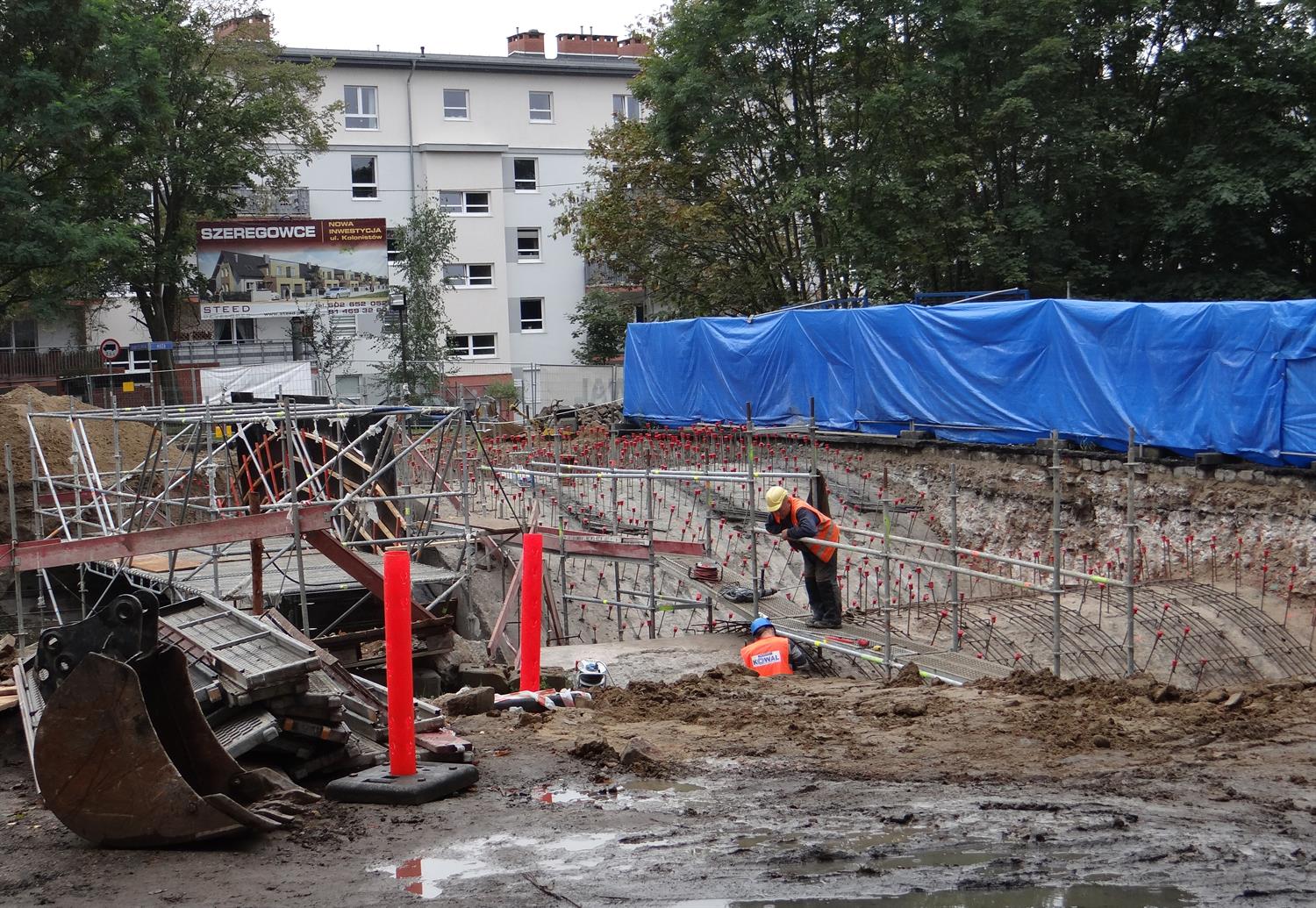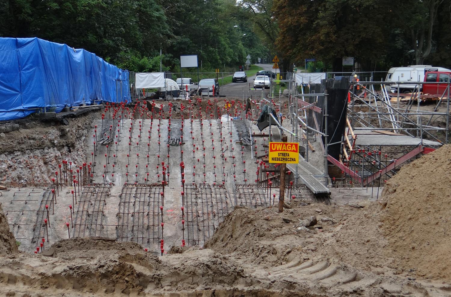 Przy okazji przebudowy drogowcy po zerwaniu starej nawierzchni wymieniali jak dotąd także część instalacji podziemnych za samym wiaduktem w jezdni ul. Hożej do zakrętu na wysokości kościoła.