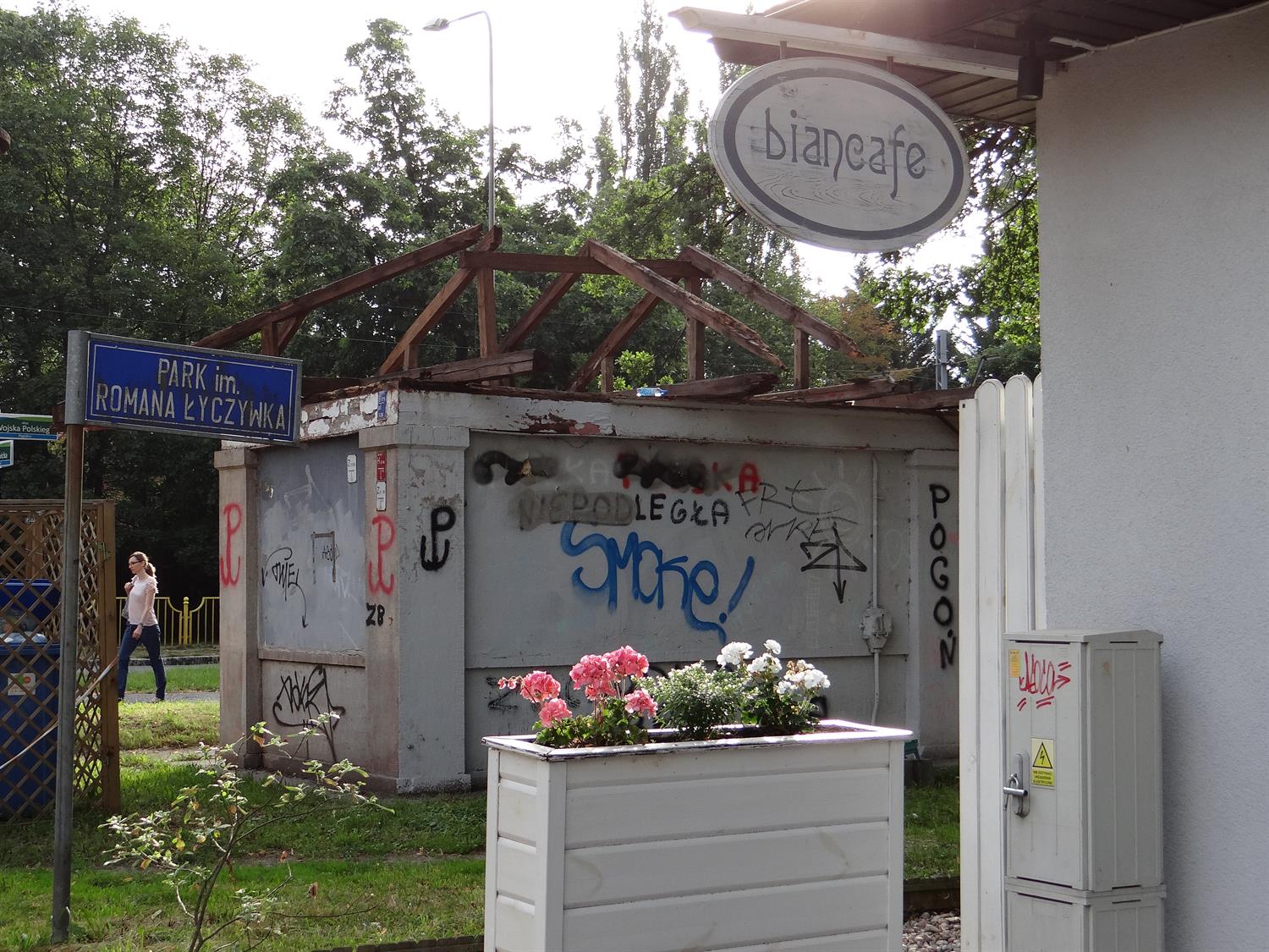 Trwa remont i adaptacja na dodatkowe pomieszczenie kawiarni Biancafe przedwojennej wiaty na skraju parku im. Romana Łyczywka u zbiegu ul. Ostrawickiej z al. Wojska Polskiego w Szczecinie. W tym właśnie miejscu w przeszłości kończyła się trasa tramwajów. Była schronieniem dla pasażerów oczekujących na kurs do centrum.