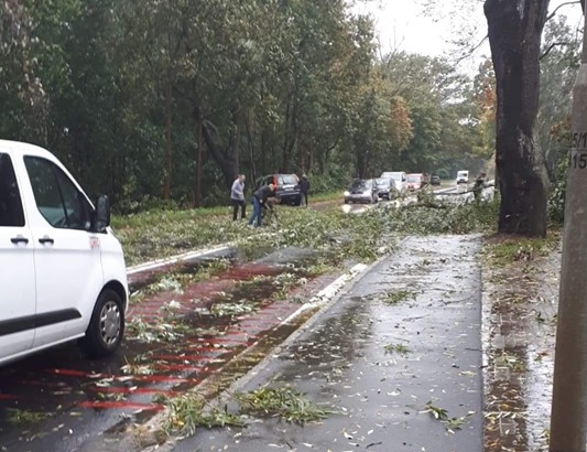 Silny wiatr w poniedziałek połamał drzewa i ich konary w Szczecinie. Niektóre z nich upadły na jezdnię.
