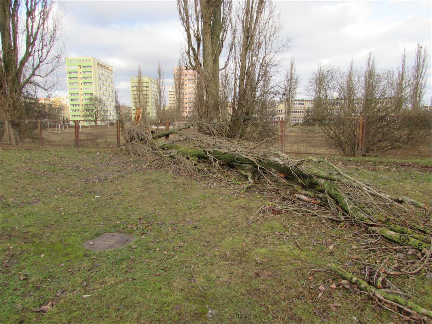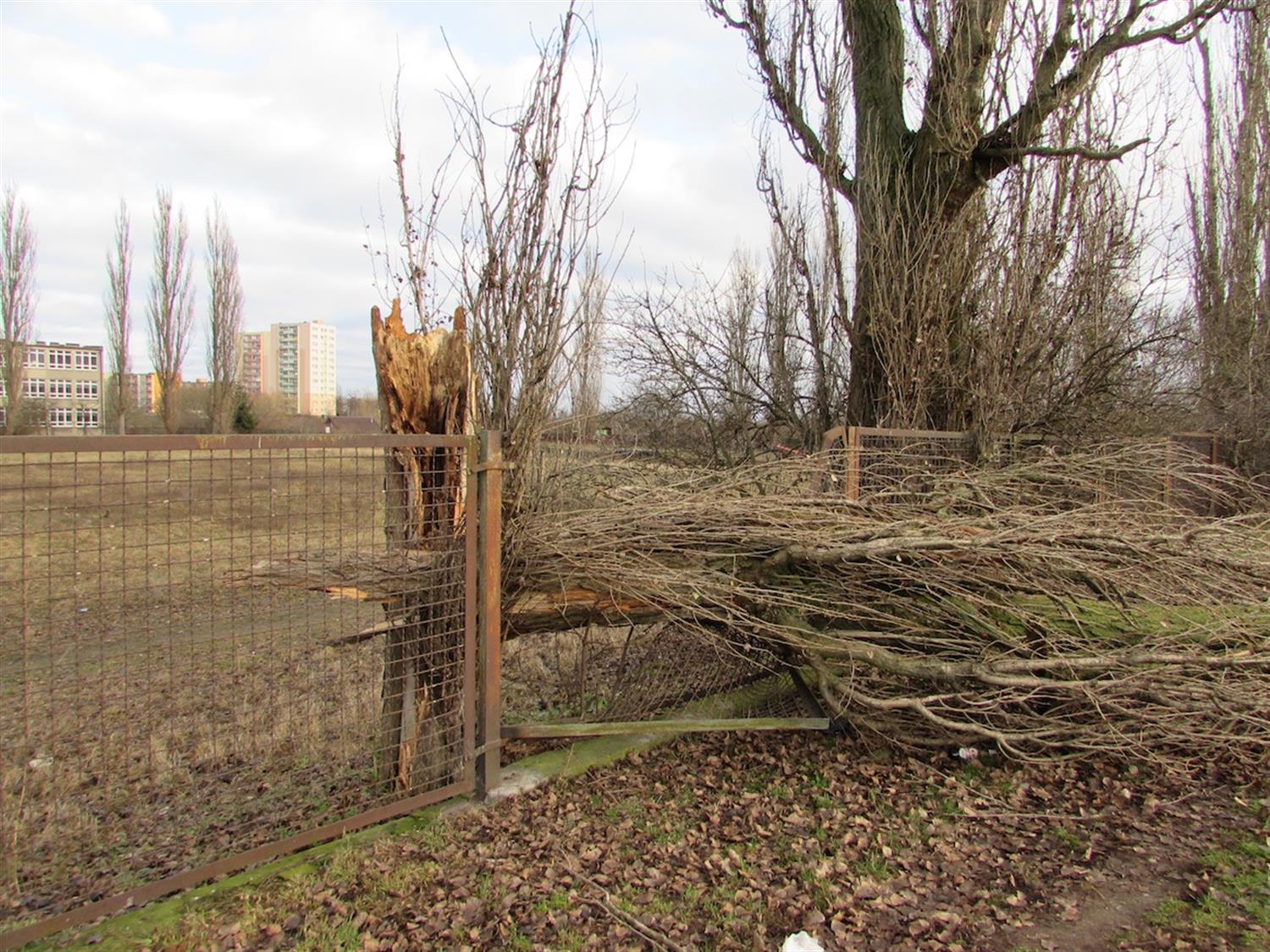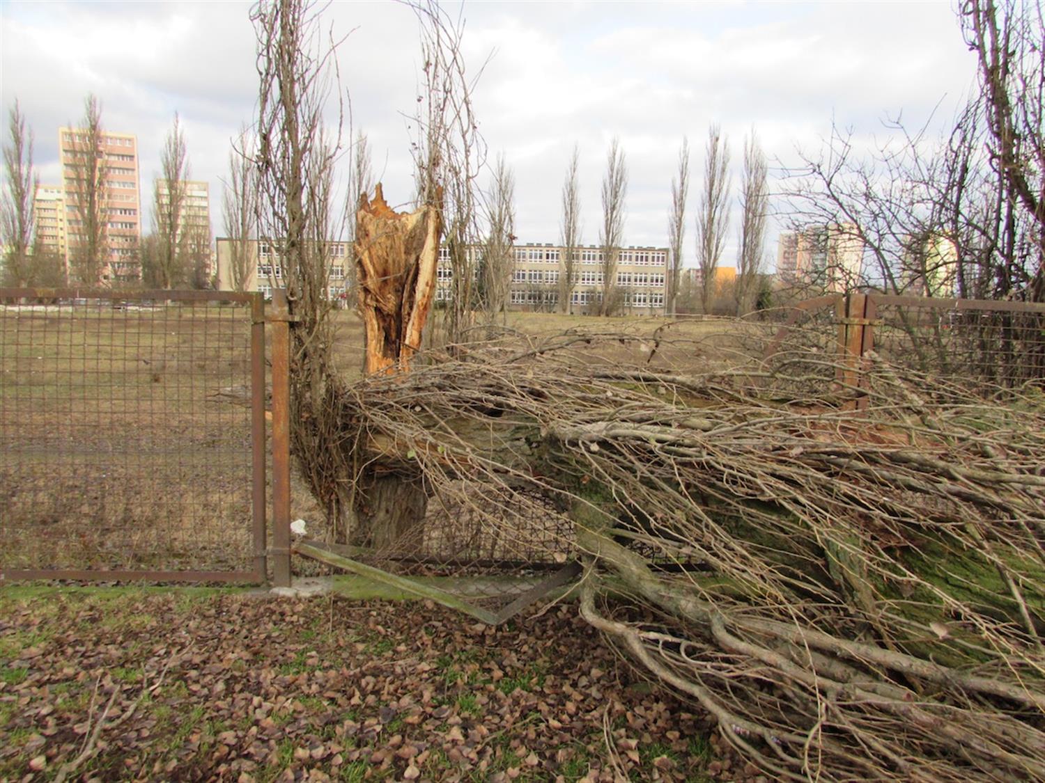 Jedna z topól rosnących obok boiska przy ul. Budziszyńskiej na szczecińskich Pomorzanach nie wytrzymała niedawnej wichury.