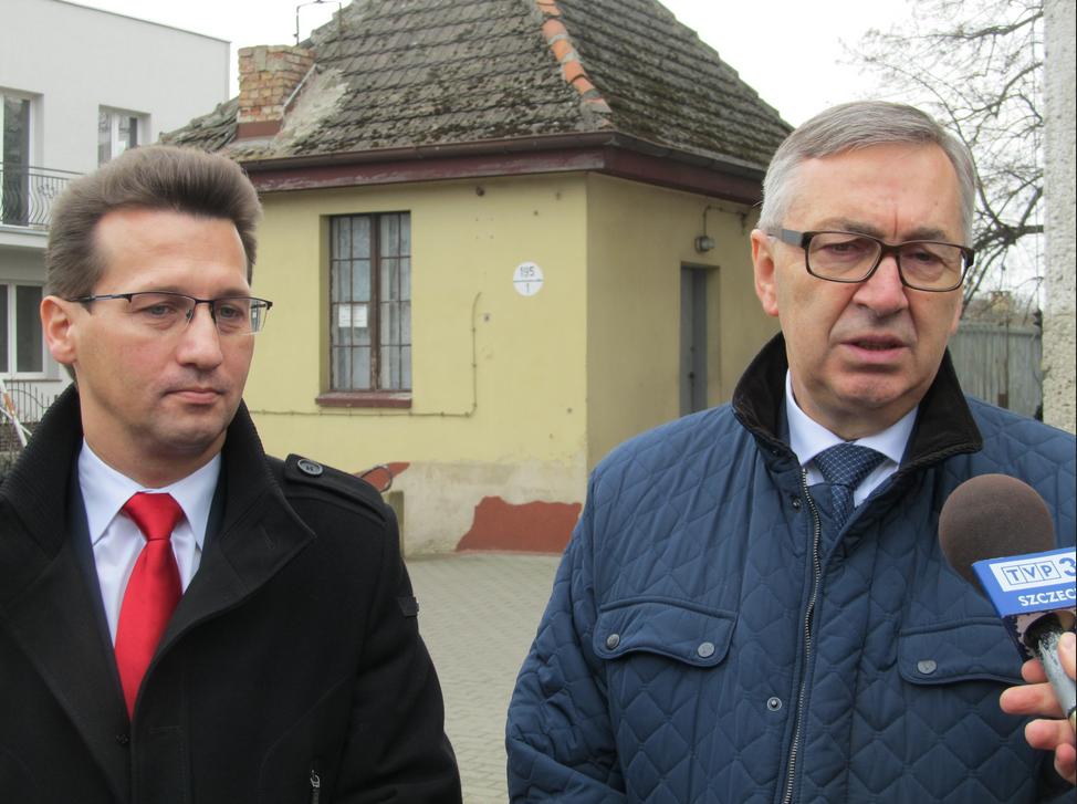 Na zdjęciu: Sekretarz stanu w Ministerstwie Rodziny, Pracy i Polityki Społecznej Stanisław Szwed (z prawej) w towarzystwie starosty stargardzkiego Ireneusza Rogowskiego.