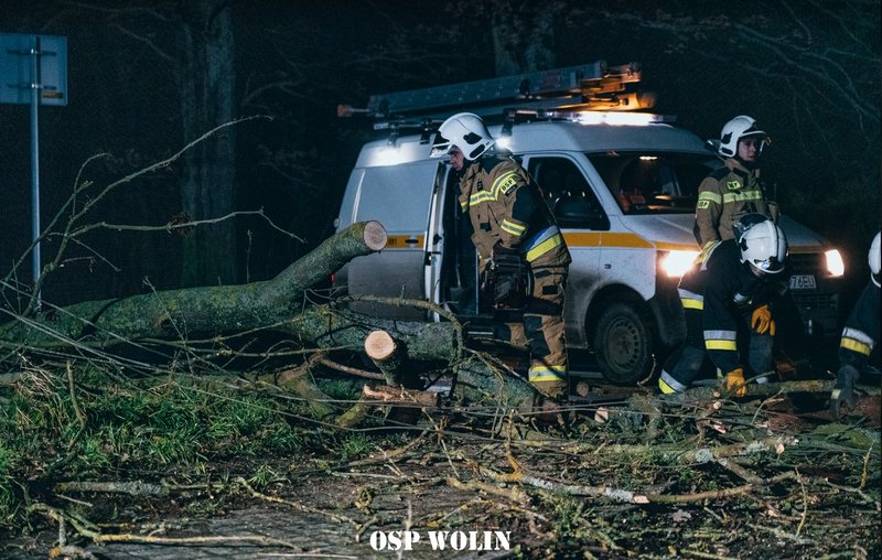 Powalone drzewo zatarasowało drogę w miejscowości Wrześnica w powiecie sławieńskim. Zwalony pień uniemożliwił przejazd drogą pomiędzy miejscowościami Orzechowo i Wierzchy w gminie Nowogard. Strażacy zostali wezwani też do usunięcia drzewa powalonego na ul. 1 Maja w Białogardzie oraz w Dargocicach w powiecie kołobrzeskim.