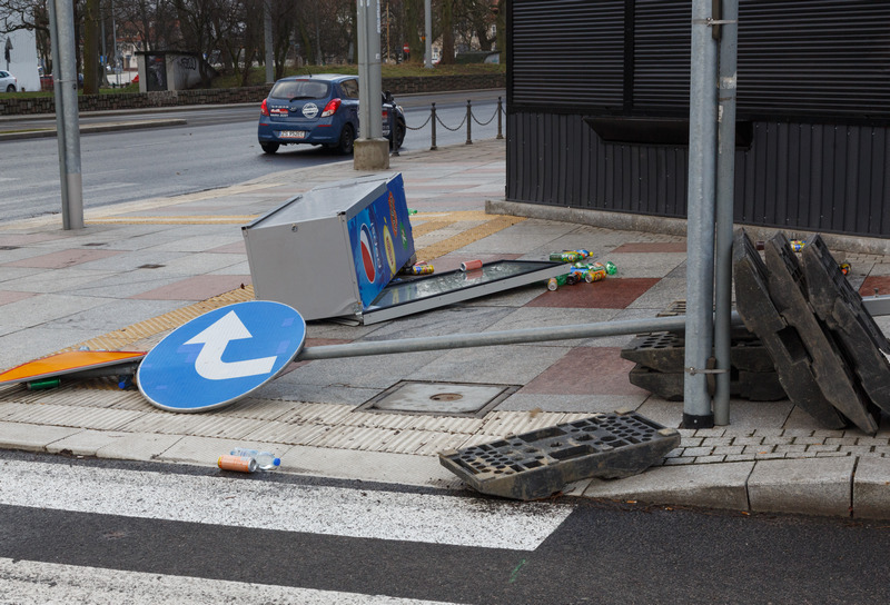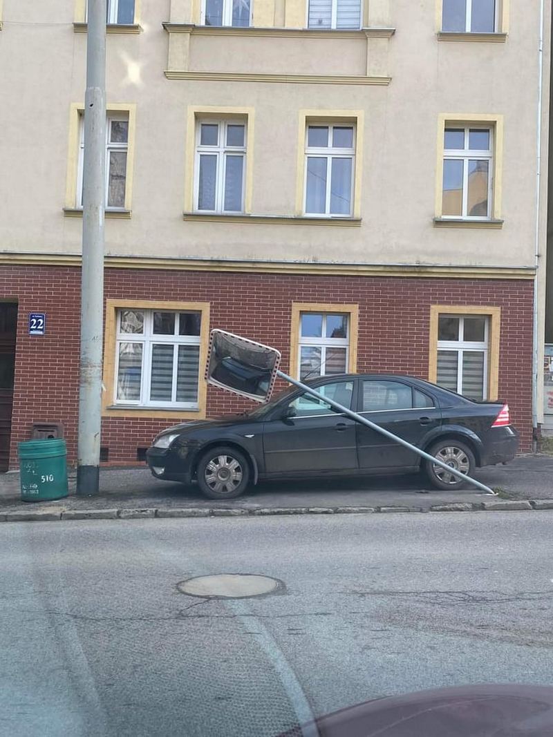 Ponadto 6 zgłoszeń dotyczyło uszkodzeń budynków - np. zerwania kawałka dachu czy rynny, w 2 przypadkach uszkodzone zostały urządzenia fotowoltaiczne. Wichura uszkodziła m.in. obudowę dachu sklepu "Społem" przy ul. Parkowej. Wiatr przestawiał również wózki sklepowe przy hipermarkecie Auchan na Ustowie, które rozjechały się po całym parkingu.