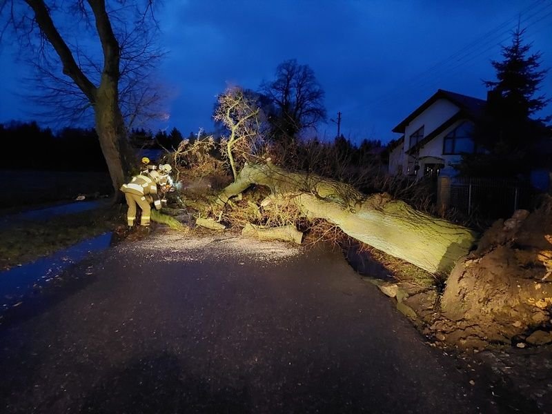 - Łącznie do godz. 8 rano dziś, interwencji było ponad 65 - mówi mł. bryg. Paweł Różański, rzecznik Państwowej Powiatowej Straży Pożarnej w Stargardzie. - Strażacy jeździli i jeżdżą nadal do powalonych na drogi drzew. Pomagają też w zabezpieczaniu dachów, z których pod wpływem