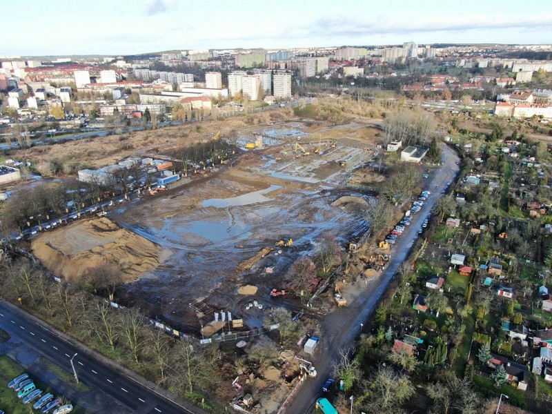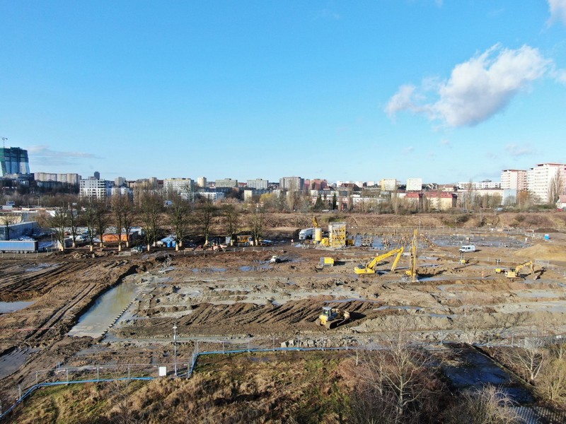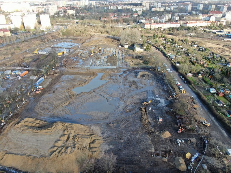 – Aktualnie trwa wykonywanie ekranu przeciwfiltracyjnego pod budynkiem basenowym, zlokalizowanym w sąsiedztwie ulicy Bożeny. Trwają również prace zmierzające do wykonania płyty fundamentowej pod budynkiem Edukatorium. W tym celu trwa skuwanie pali oraz wylewanie warstwy chudego betonu. W najbliższym czasie na budowie dostrzec będzie można również zmontowane żurawie – informuje Piotr Zieliński ze spółki Fabryka Wody, powołanej do realizacji inwestycji.
