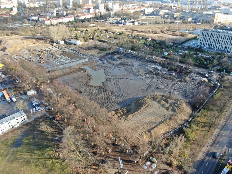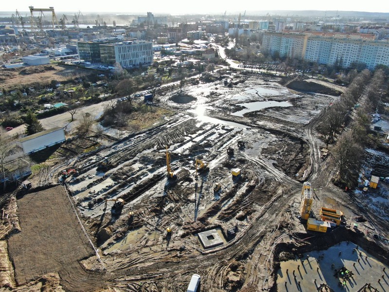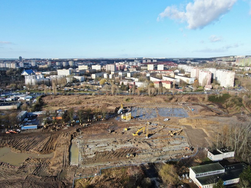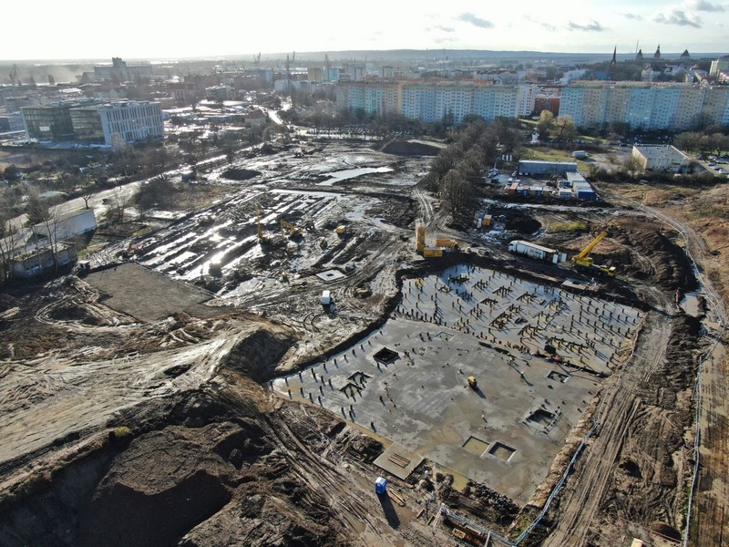 Na budowie szczecińskiego aquaparku pojawiły się już zarysy dwóch budynków.
