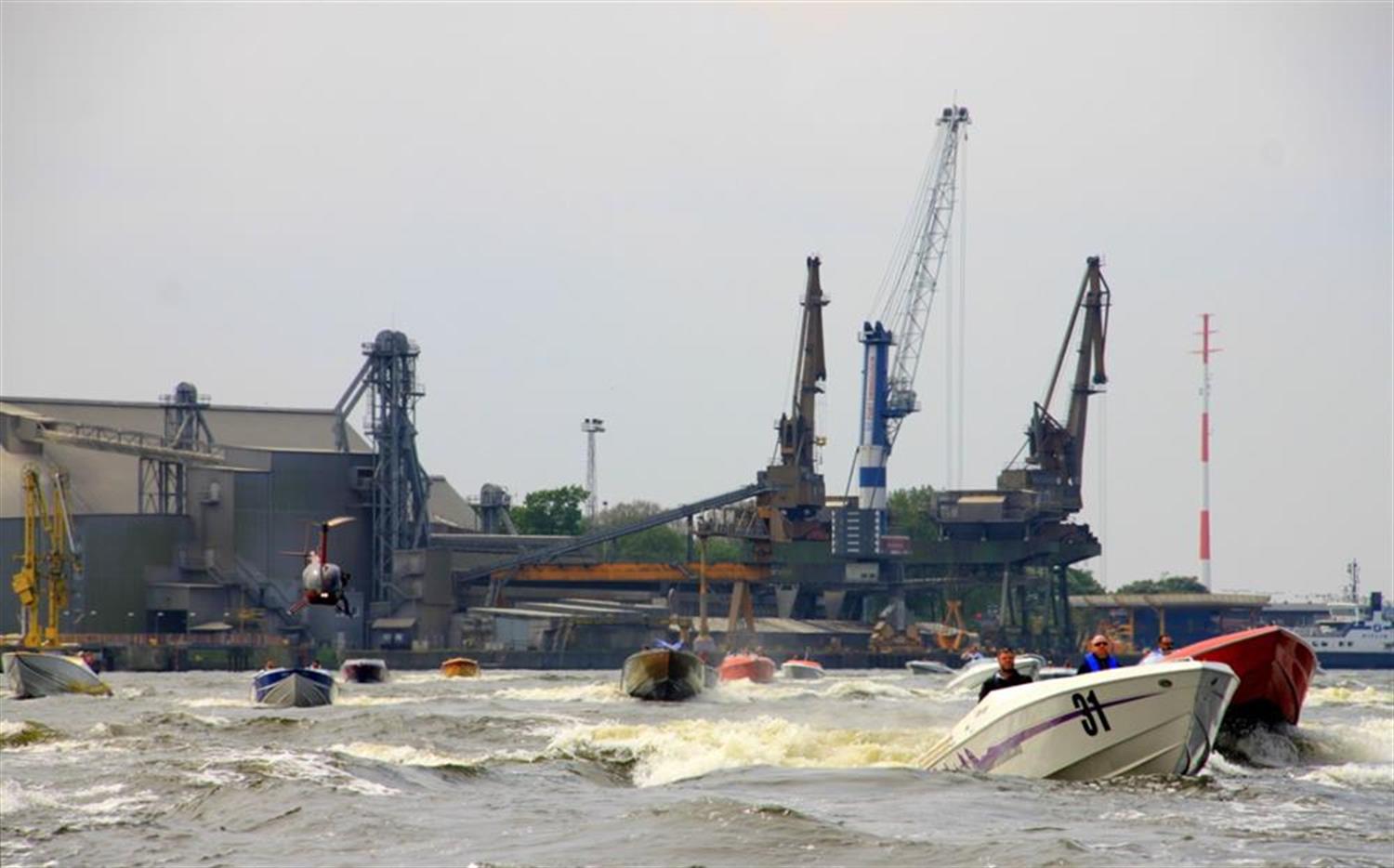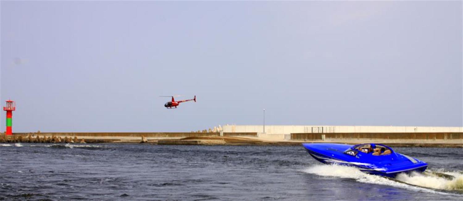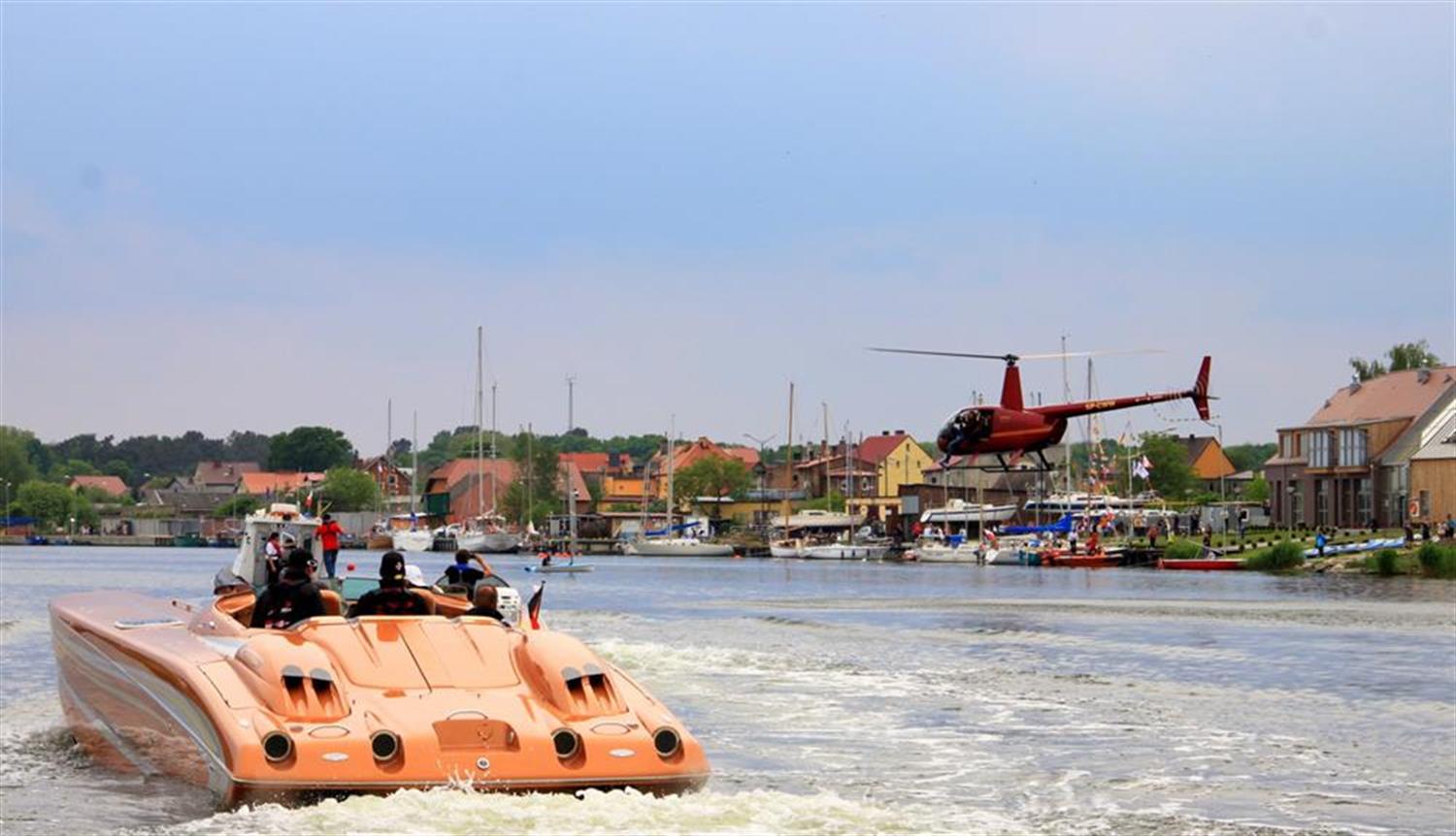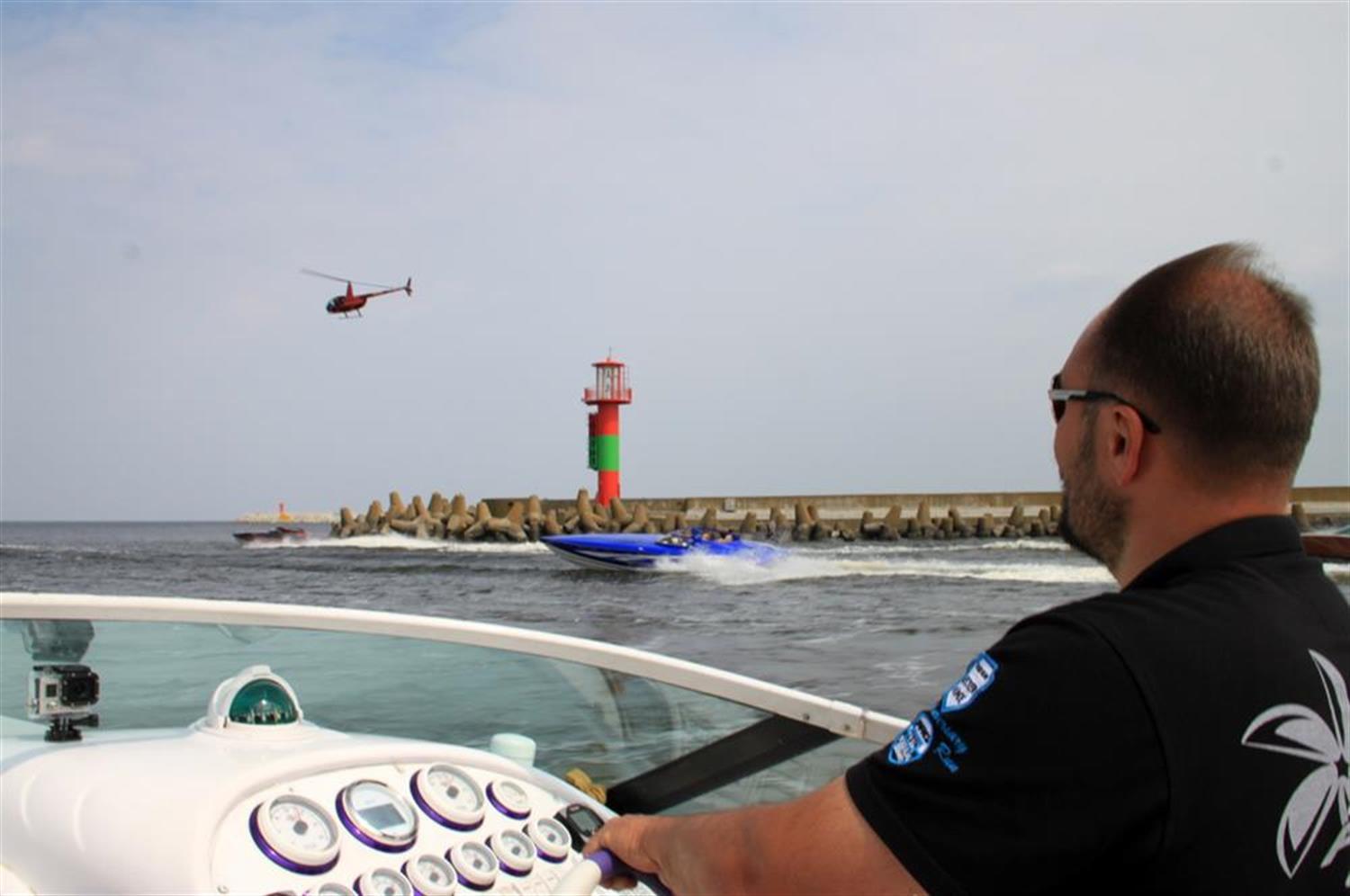 Po krótkim pobycie w dziwnowskiej marinie sezonowej superszybkie motorówki (z silnikami o mocy 1500 KM) wracały przez Wolin. Widowiskową eskapadę filmowała ekipa telewizyjna ze śmigłowca, który na czas postoju łodzi w Dziwnowie wylądował na terenie mariny. (ek)