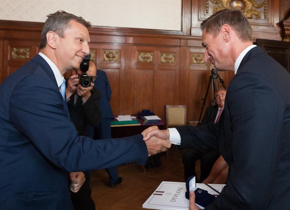 Na zdj.: Marszałek Olgierd Geblewicz był jedną z osób, której minister wręczył Odznakę Honorową za Zasługi dla Samorządu Terytorialnego.