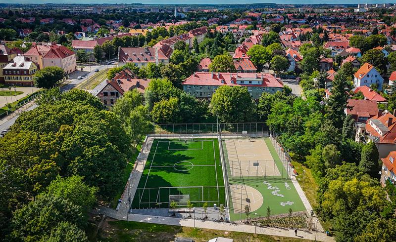 To kolejne miejsce do aktywnego odpoczynku na Pogodnie. Przed kilkoma dniami na niezagospodarowanym wcześniej terenie dawnego boiska pomiędzy ulicami Mickiewicza i Korfantego powstała okazała strefa sportu. Do dyspozycji mieszkańców są tam boisko do gry w piłkę nożną o wymiarach 21x40 m, pełnowymiarowe boisko do gry w koszykówkę oraz boisko wielofunkcyjne z koszem i strefą gier młodzieżowych.
