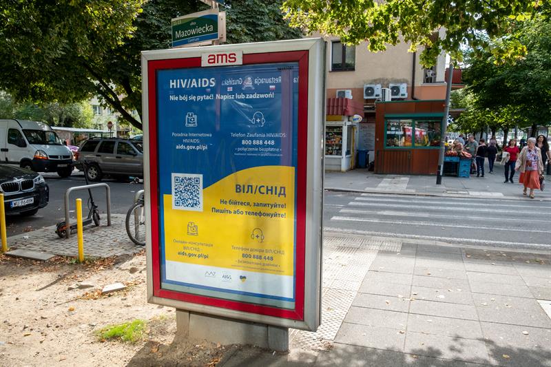 Kampanie informacyjne i działania promocyjne, dotyczące profilaktyki zakażeń HIV, w skali kraju realizuje Krajowe Centrum ds. AIDS – agenda działająca w imieniu Ministra Zdrowia. Informacje na temat profilaktyki (także badań diagnostycznych, miejsc, w których można bezpłatnie i anonimowo wykonać test) publikuje na billboardach oraz na stronie internetowej (https://aids.gov.pl/). Prowadzony jest też telefon zaufania HIV/AIDS, pod którym w poniedziałki i piątki (w godz. 10-14) dyżuruje lekarz mówiący również po ukraińsku (nr tel. 800 888 448).