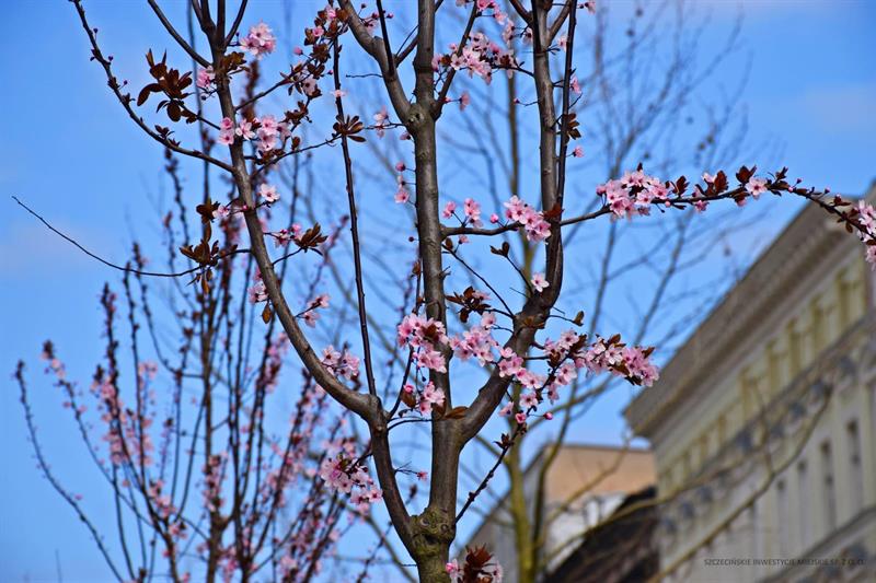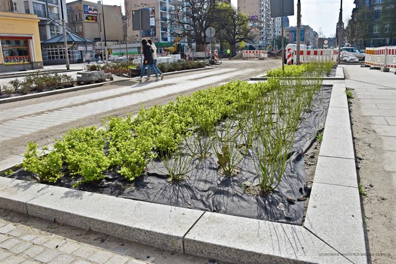 Na przebudowywanym śródmiejskim odcinku alei Wojska Polskiego w Szczecinie drzewa wypuszczają pierwsze pąki. Przybywa też coraz więcej nowych sadzonek – zarówno drzew, jak i krzewów.