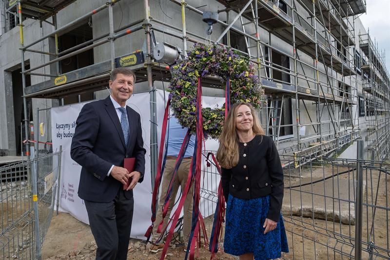 Na placu budowy przy ul. Unii Lubelskiej w Szczecinie odbyła się wczoraj uroczystość zawieszenia wiechy na powstającym budynku Kliniczno-Dydaktyczno-Badawczym Pomorskiego Uniwersytetu Medycznego. To tradycyjny moment w procesie budowlanym, symbolizujący zakończenie etapu prac konstrukcyjnych.