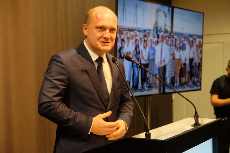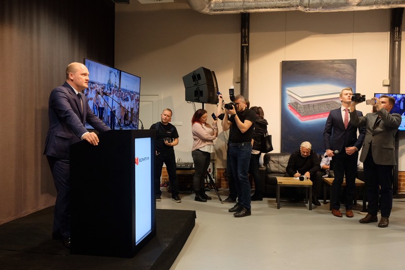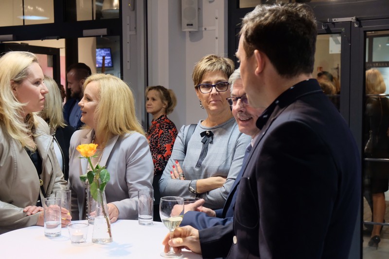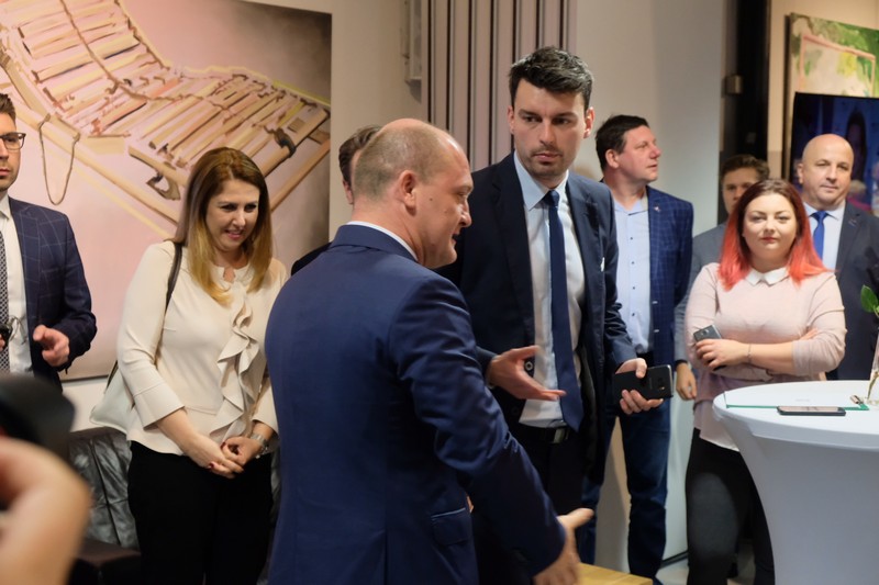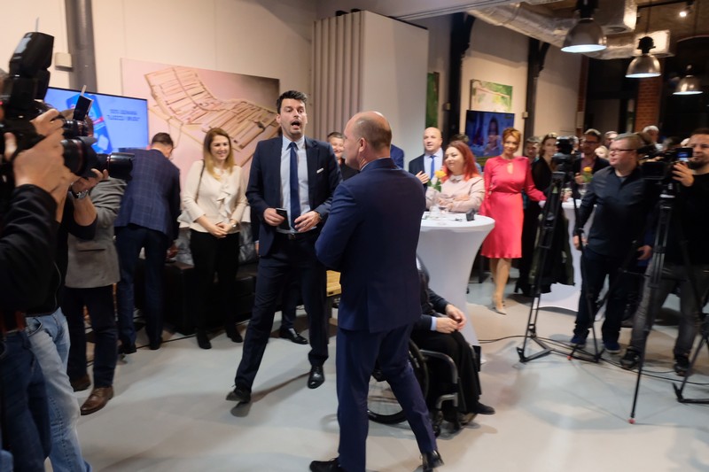 Na trzy minuty przed godziną 21 pojawił się prezydent Szczecina Piotr Krzystek. Przywitały go oklaski zgromadzonych. Widać było, że jest w doskonałym nastroju i odprężony. Tuż po krótkim wywiadzie dla TVP przemówił do zebranych.