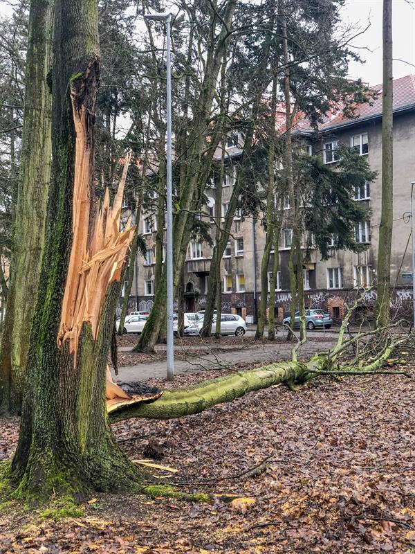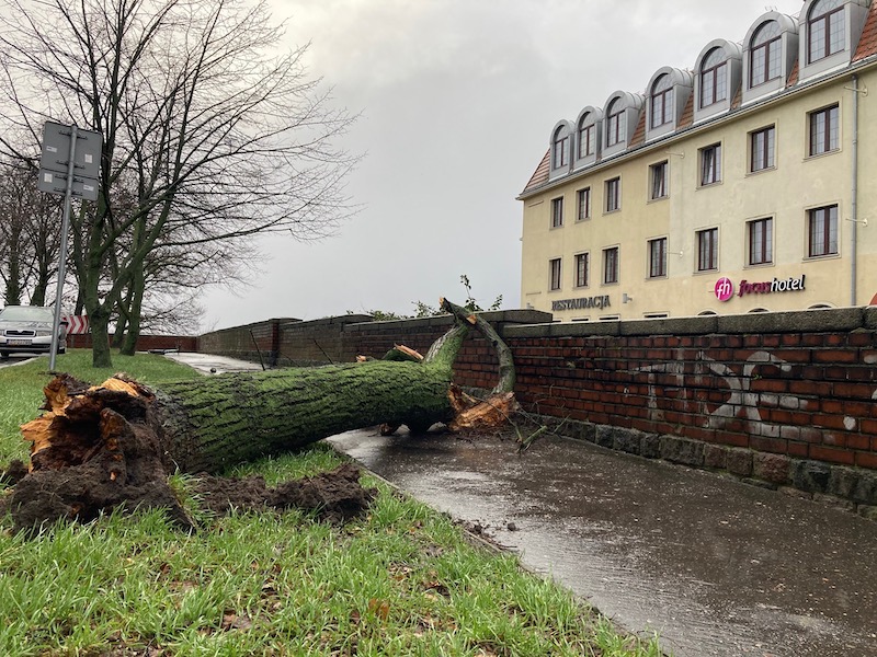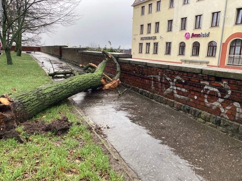 Straż pożarna i miejskie służby na bieżąco starają się usuwać zawalidrogi, odblokowując trasy z wiatrołomów. Jednak ostrzeżenie meteorologiczne dla naszego regionu wciąż jest aktualne. Prędkość wiatru w Szczecinie nadal przekracza 50 km/h. Mimo że słabnie, to jednak warto zachować ostrożność.