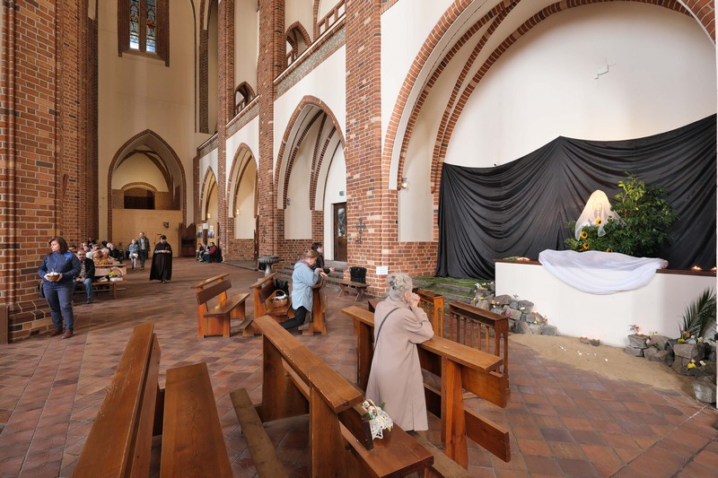 Trwa Wielka Sobota. Szczecinianie tradycyjnie przychodzą do kościołów z koszyczkami z gotową do poświęcenia żywnością: chlebem, jajkami, słodkościami. Każda świątynia przygotowała także symboliczny grób Jezusa, przy którym można się pomodlić. Odwiedzinom w kościołach sprzyja świetna pogoda.
